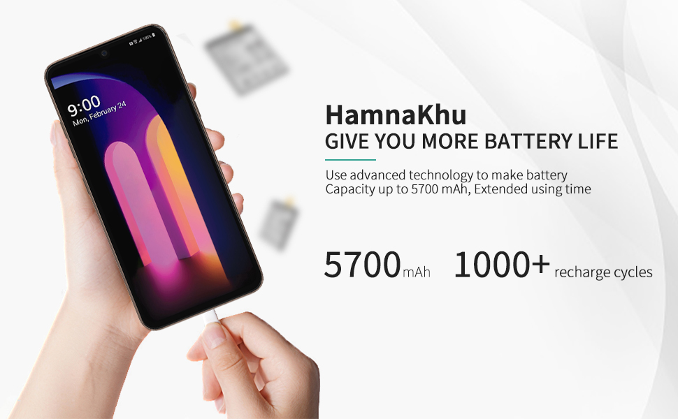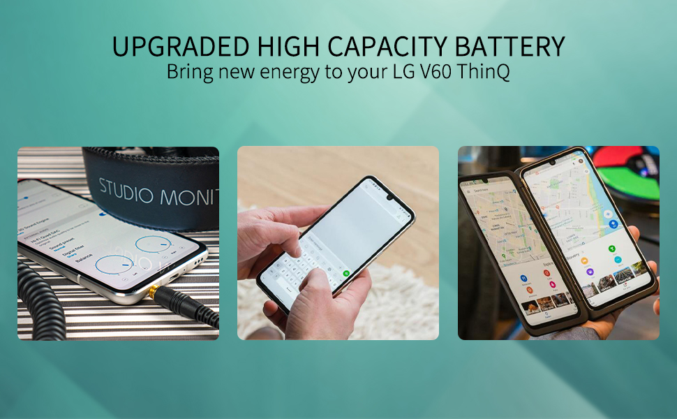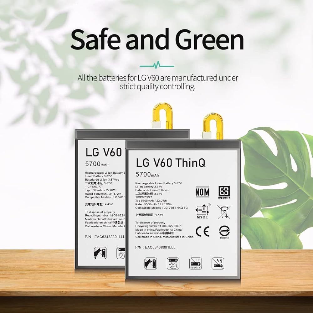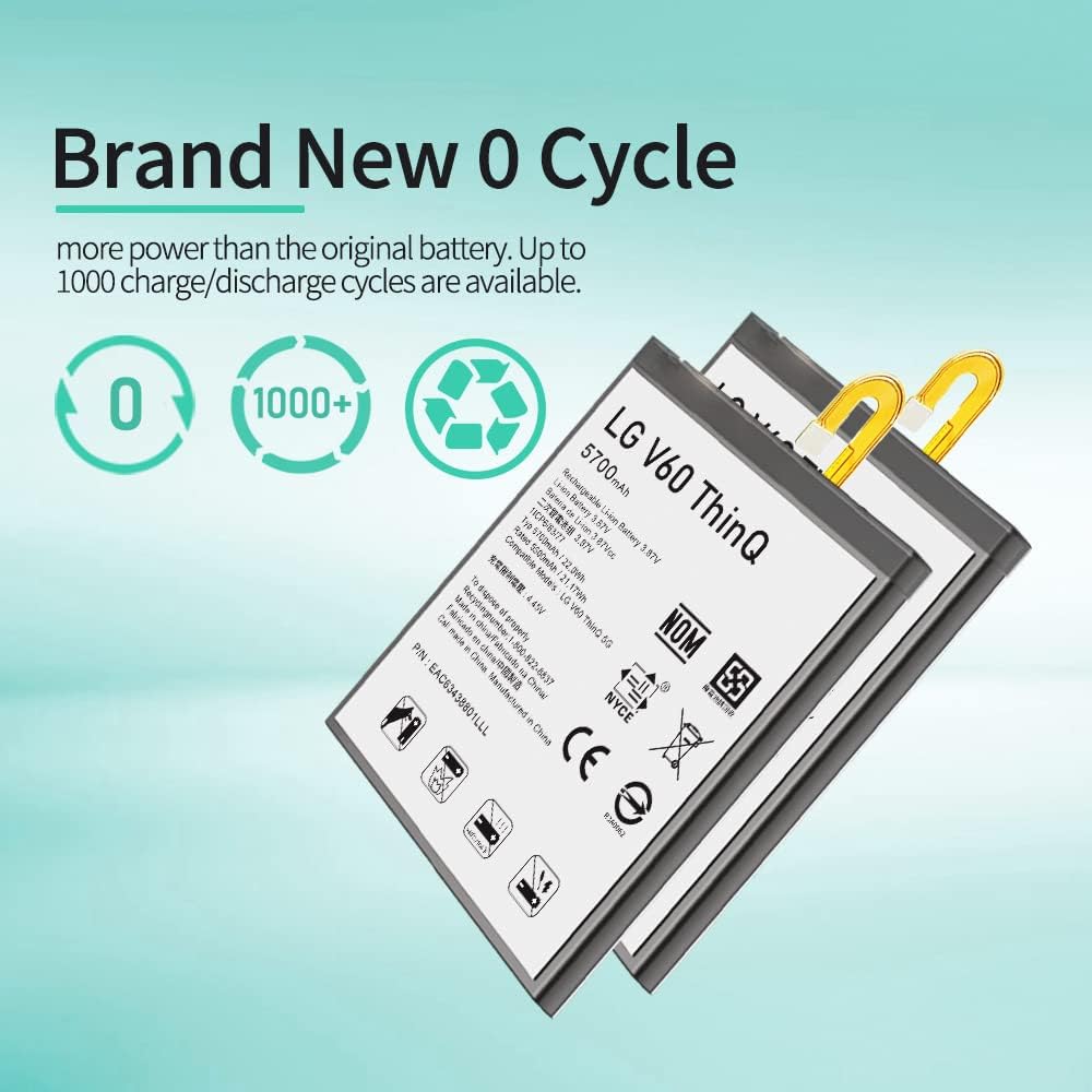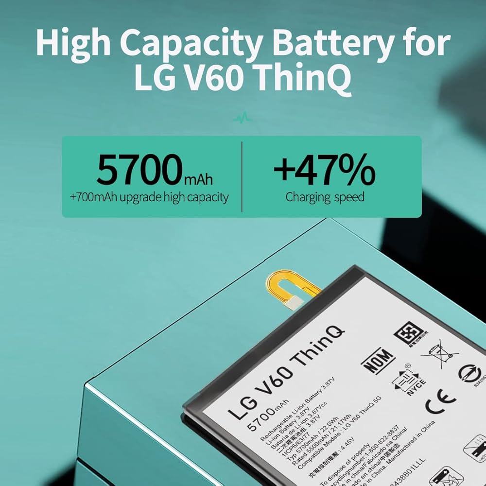 📲>>Spare Battery Specs:This LG V60 Battery Replacement Battery has the same size and performance as the original battery. Capacity:5700mAh. The Battery Type:Lithium Ion, The Voltage:3.85V.