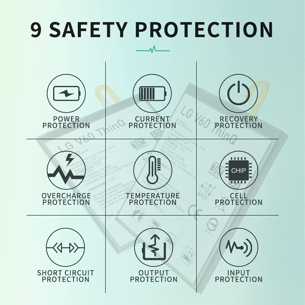 📲>>High Quality Battery:This LG V60 replacement battery uses a high-quality lithium-ion battery, which extends the life of the battery. Advanced technology makes this replacement battery capacity up to 5700mAh, providing you with high-speed and efficient charging. Each LG V60 battery is equipped with a high-quality chip, which provides multiple protections for your mobile phone to prevent overcharge, overdischarge, short circuit and overheating. Provide safer operation for users and equipment.