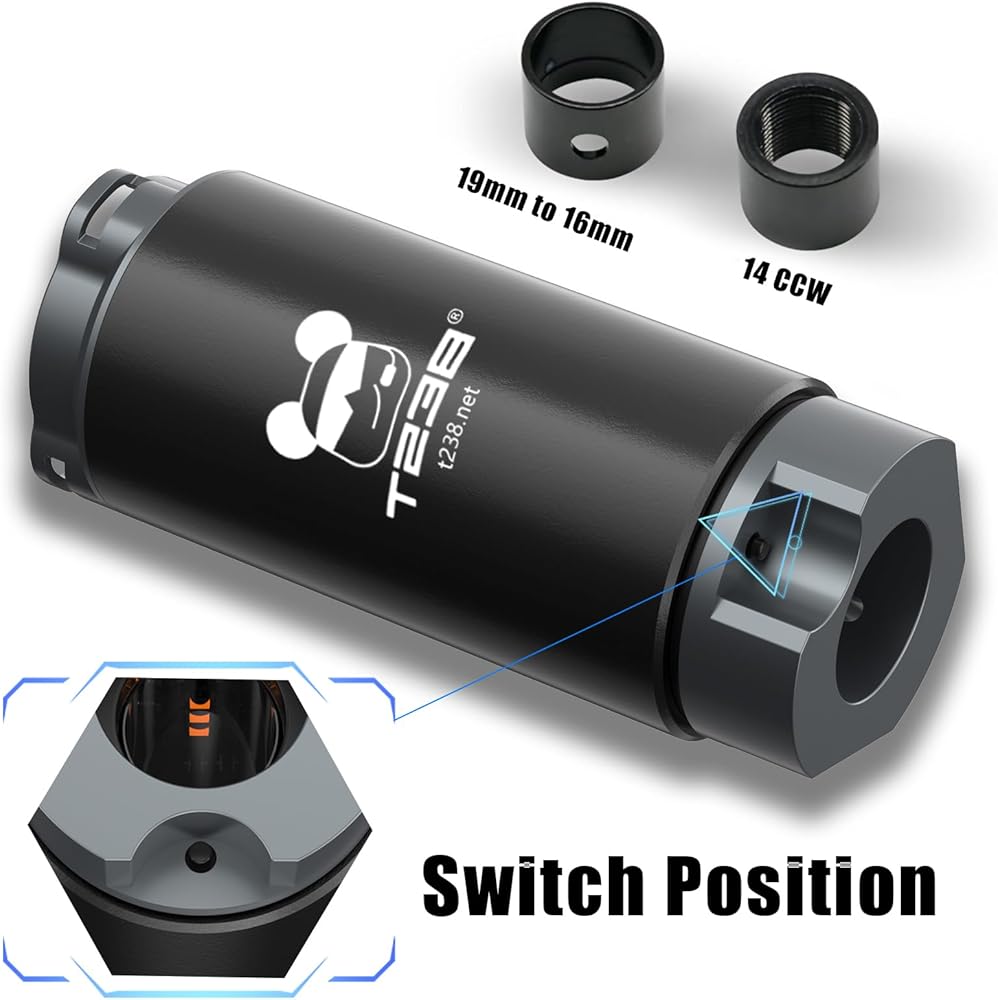 T238 Tracer Unit: Comes with 14mm CCW and 19mm to 16mm adapters. Compatible with Airsoft, Gel blasters, and Nerf. **Note: Not recommended for airsoft pistols.**