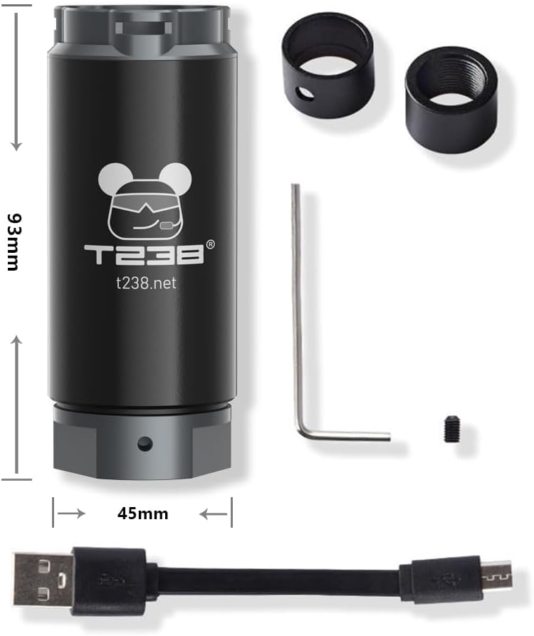T238-Airsoft Tracer Unit Basic Version, Spitfire Tactical Tracer Unit for Airsoft/NERF/Gel Blaster, 14mm Counterclockwise Threaded Adapter, 19mm to 16mm Adapter and Allen Key