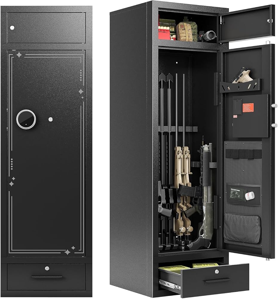 10-12 Gun Safes, Gun Safe for Rifles and Pistols Safe for Home, Quick & Easy Access Gun Cabinets for Rifle and Handgun with LED Light & Drawer, Electronic Lock