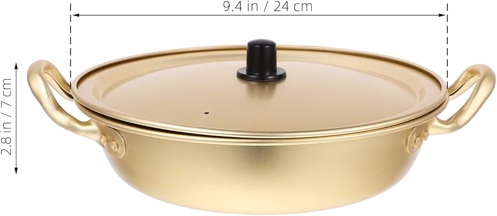 • Quick Heating Efficiency: Crafted from aluminum alloy, this golden Korean ramen pot heats up rapidly, saving time while preparing soups, stews, noodles, and more. Designed for use with open flames or electric ceramic stoves, it assures a seamless cooking experience