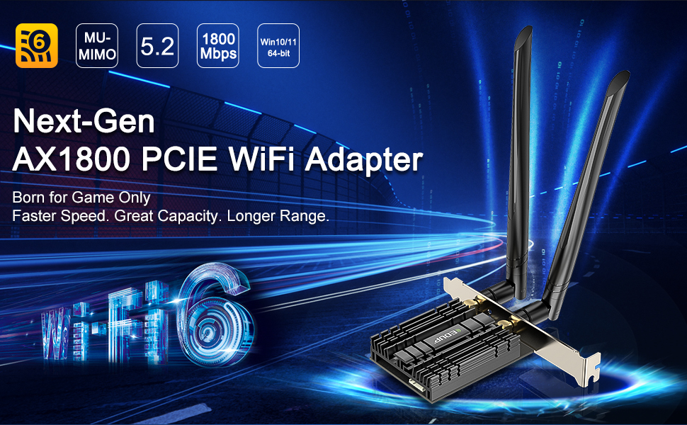 EDUP Wi-Fi 6 Card : Only support OS Windows 10 64-bit for desktop; Upgrade your Wi Fi speeds up to 1800Mbps. Frequency 5. 8GHz up to 1200Mbps, Frequency 2. 4GHz up to 574Mbps. Backward Compatible with IEEE 802. 11 ac/b/g/n.