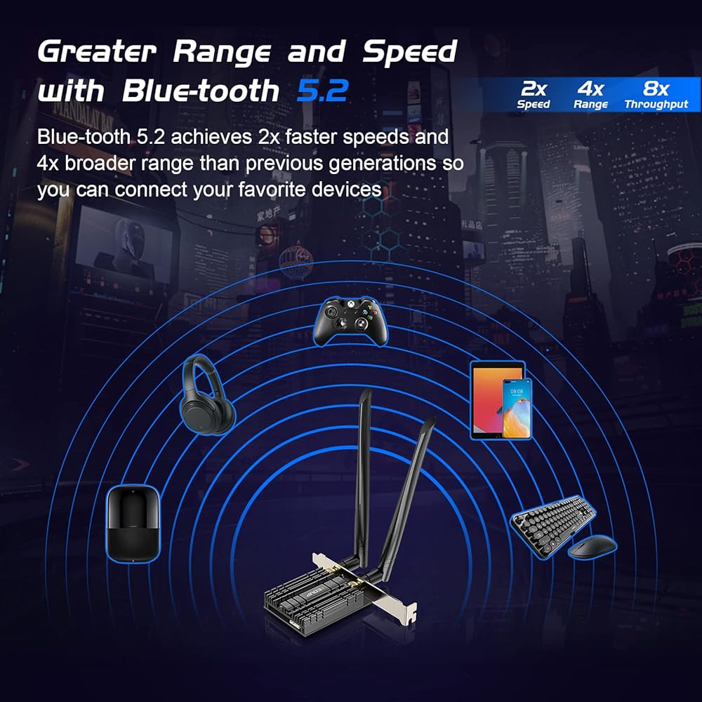✅Bluetooth 5.2 Technology: The Bluetooth use brand new 5.2 technology that expand the range of 4 x Bluetooth signal, no need to worry the signal will be weak in the room and waiting long time for transport the large files, the new Bluetooth 5.2 will solve this problem, and it can connect with the mouse, earphone, keyboard and other Bluetooth devices ( Note: you have to insert the power cable to the Motherboard 9-pin interface for Bluetooth function )
