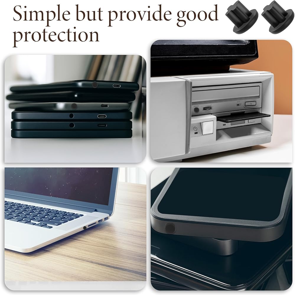 Mini Discreet Design: 6 x 5 x 3.5 mm rubber dust plugs offer invisible protection. Slim profile prevents bulk while blocking debris. Ideal for portable devices requiring low-profile solutions