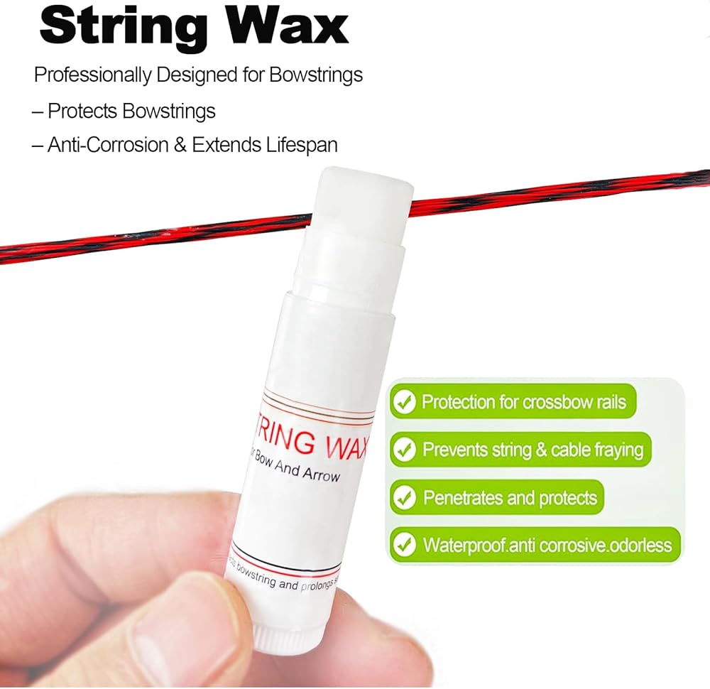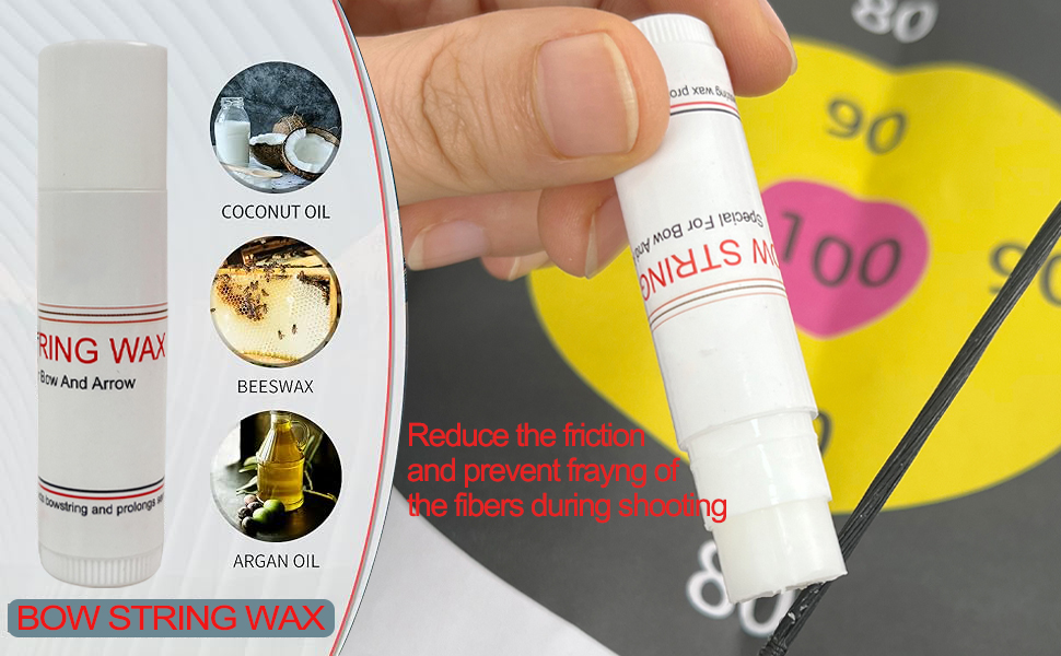 【Quality material】The bow string wax is made of resin, beeswax and white petrolatum, safe and non-toxic materials that maintain strings well, It can reduce friction and prevent fraying of the fibers during shooting.