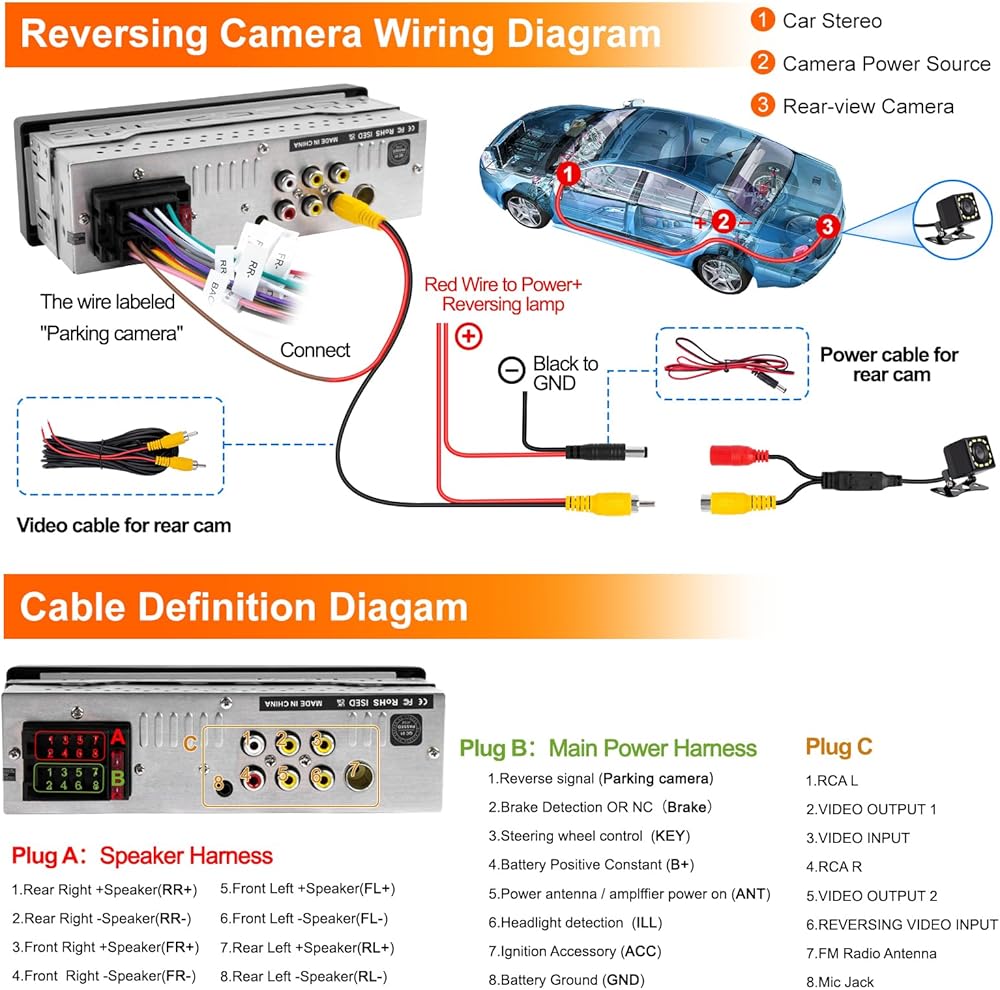【Night Vision Waterproof Rearview Camera】: Park with confidence using the automatic rearview camera. Bright LEDs and parking guidelines ensure a clear view in darkness or rain.