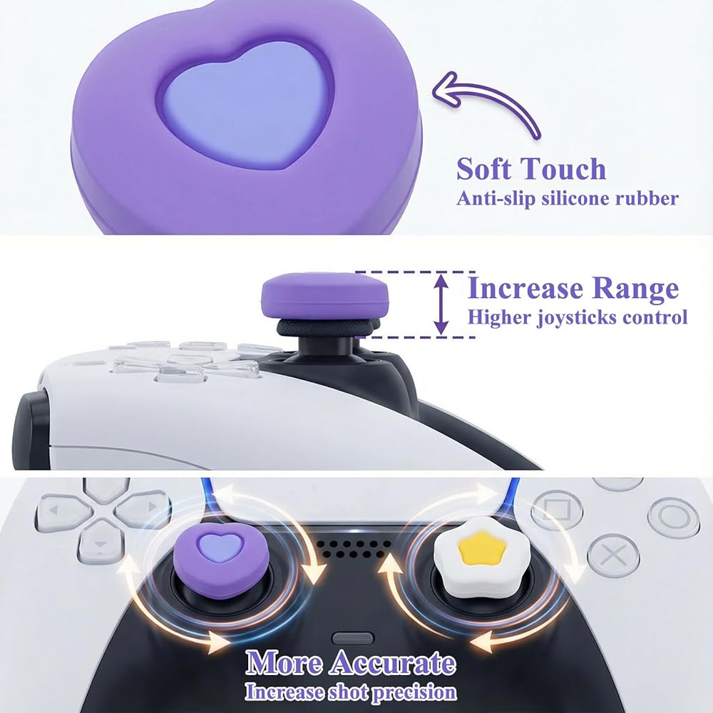 6 PCS Thumb Grips for Nintendo Switch Pro Controller - Soft Silicone Joystick Caps with Cute Heart & Star Designs | Non-Slip, Comfort & Protect | Gaming Accessories Gift for Women & Men