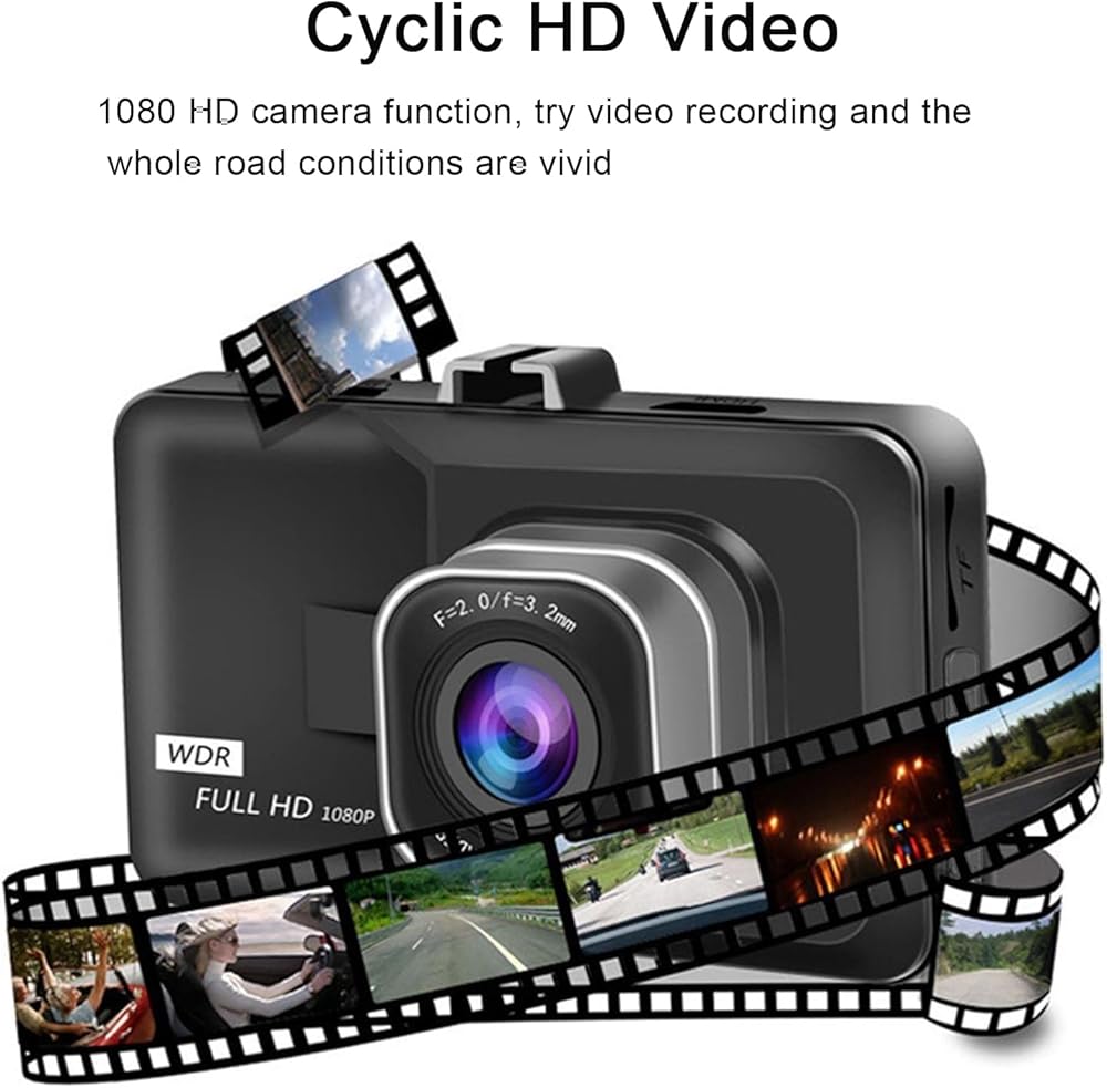 3-inch 1080p High-Definition Dash cam for Cars, 24 Hour Recording, 170° Large Wide-Angle,Super Night Vision, G-Sensor Parking Monitoring Loop Video Motion Detection