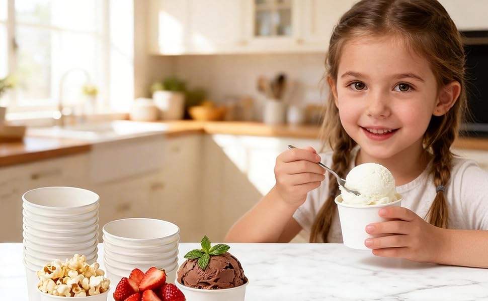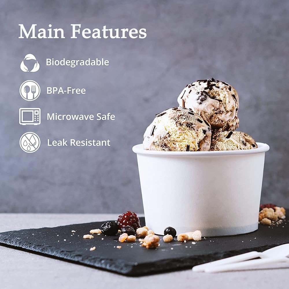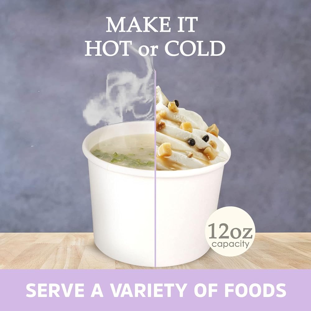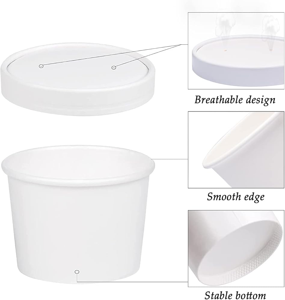 50 Count 6 OZ Disposable White Ice Cream Cups(Paper Cup Takeout Food Container).