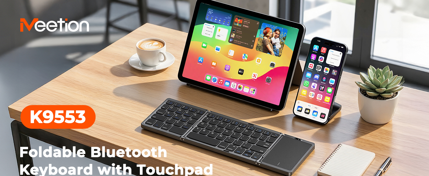 【MEETION Foldable Wireless Keyboard】Unlock the freedom of space with the MEETION folding keyboard! The silent scissor-legged keys are designed for gentle, noise-free tapping, helping you to immerse yourself in the rhythm of your work without disturbing others or interfering with your work.