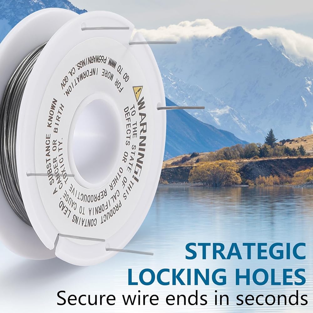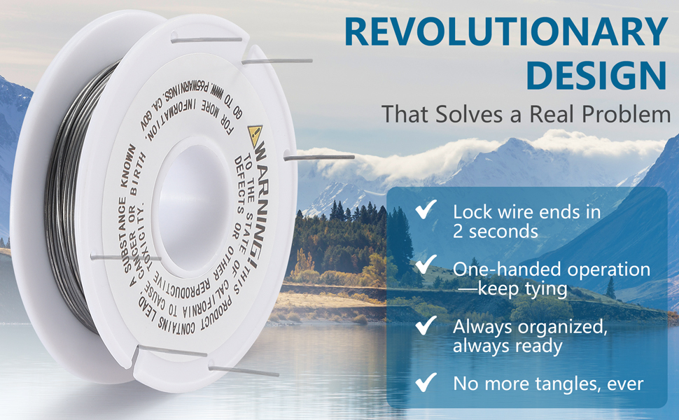 PATENTED HOLE-PATTERN SPOOL DESIGN — HOLAMA exclusive reel features strategic locking holes that let you casually secure wire ends in seconds, preventing unwanted unraveling and enabling one-handed dispensing. Tangle-free dispensing saves time at the tying bench.