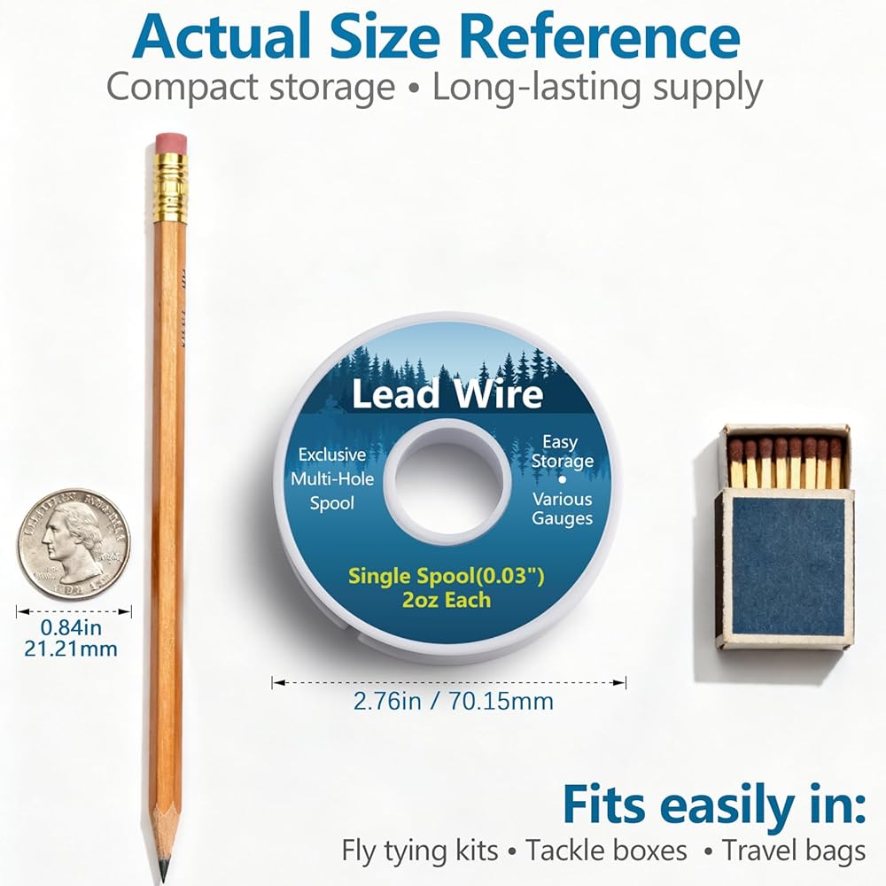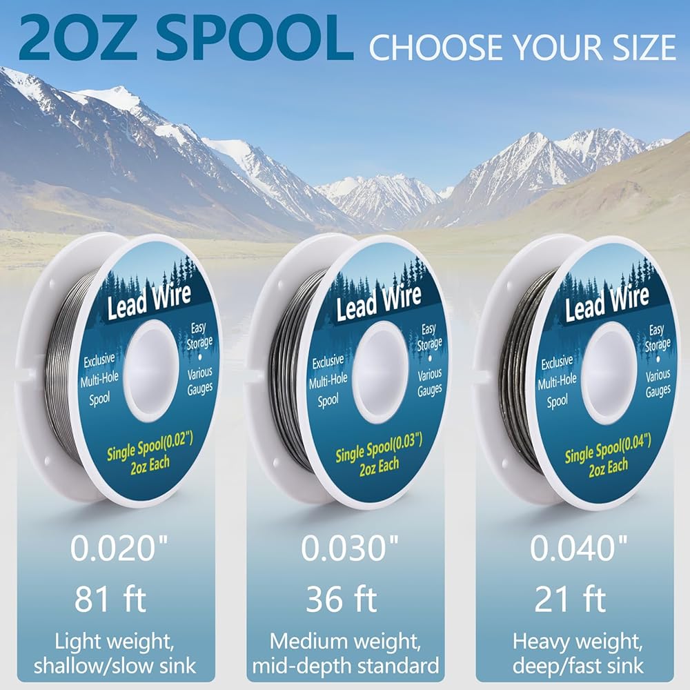 GENEROUS 2 OZ SPOOLS — 0.020" spool contains 81 ft, 0.030" contains 36 ft, and 0.040" contains 21 ft of lead wire. Combo pack includes all 3 sizes for maximum versatility across different fly patterns and hook sizes.
