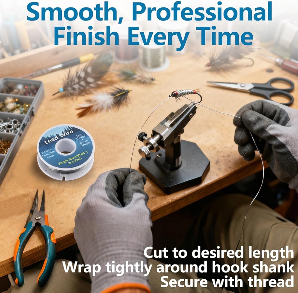 PREMIUM 99.9% PURE LEAD — Three precision-milled diameter options (0.020", 0.030", 0.040") deliver perfect weighting for nymphs, streamers, wet flies, and saltwater patterns. Soft, malleable wire wraps smoothly without breaking or creating bulk.