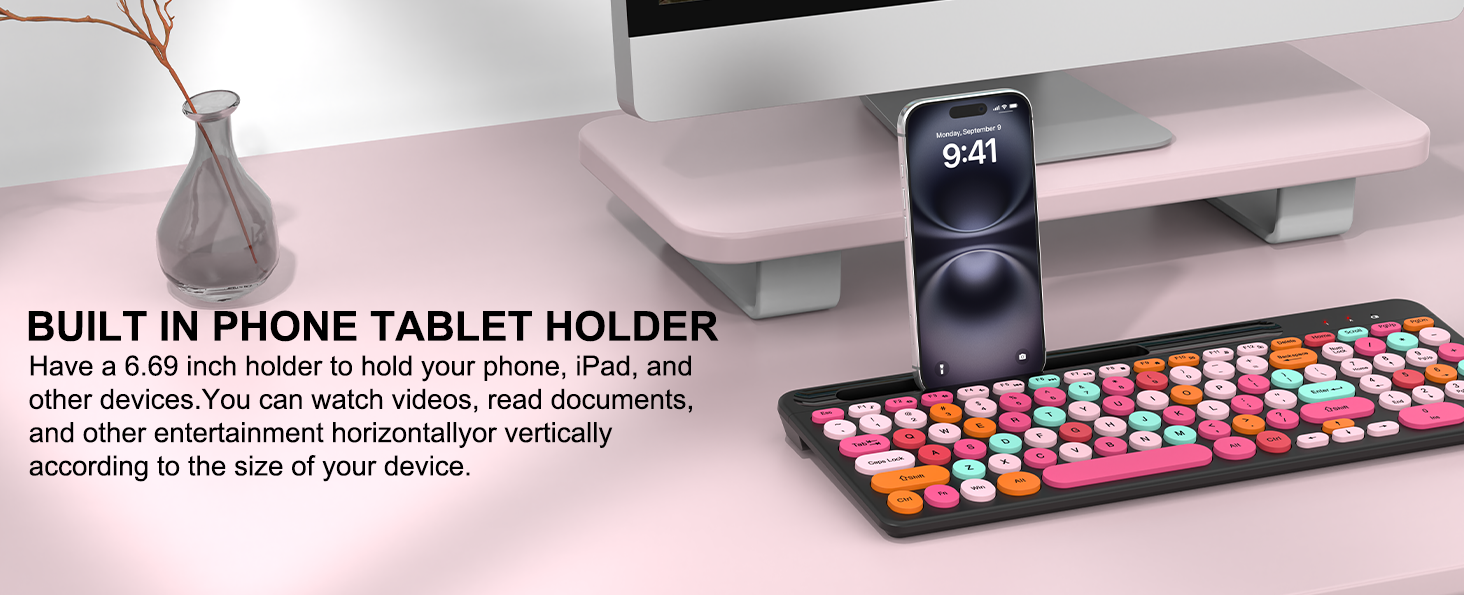 【Cute Colorful Retro Round Keycaps Keyboard】The typewriter style pink and black colorful keyboard and mouse are uniquely designed, combining retro industrial aesthetics and comfortable touch to add vitality to your desktop. With the upgraded craftsmanship, you don't have to worry about the color fading.