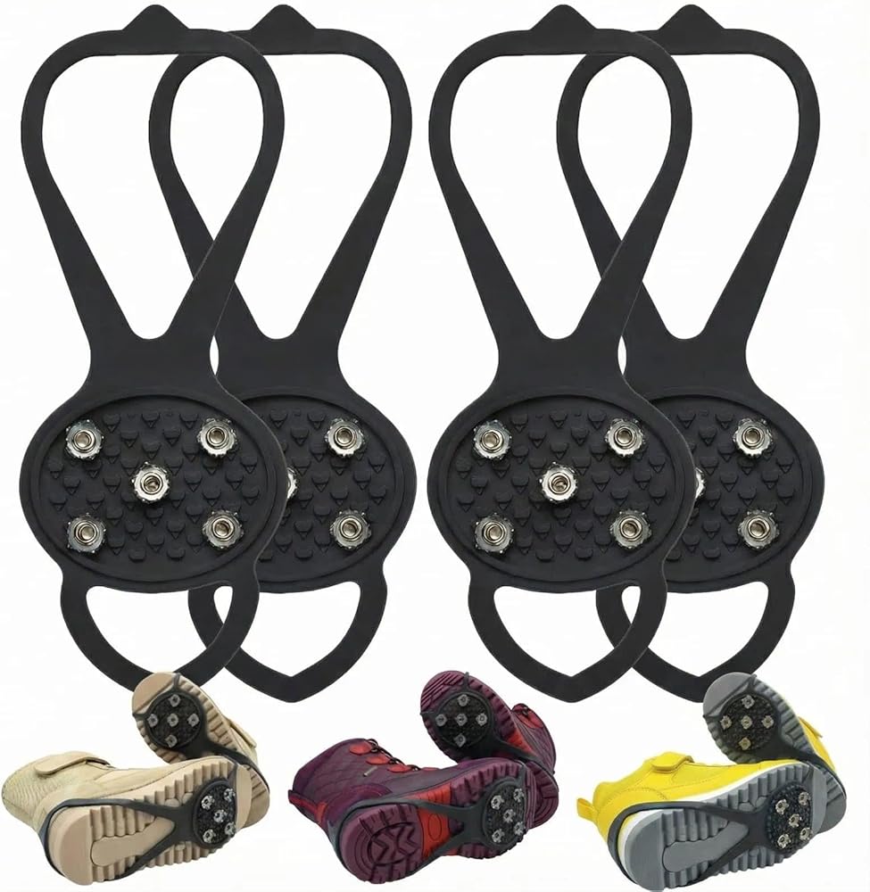Reliable Footwear Traction for Icy and Snowy Conditions Prepare for unpredictable winter weather with these practical anti-slip cleats. Designed to offer stability and confidence, these grips are an essential accessory for walking safely on ice-covered pavements, snowy paths, and other slippery surfaces encountered during a typical British winter. The set of two pairs ensures you are always prepared, whether for yourself or to share.
