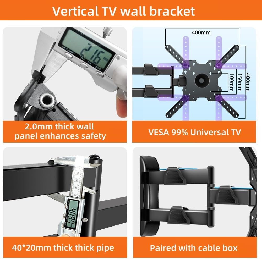 【Heavy-duty Unit】Articulating tv wall mount is made of sturdy cold rolled steel.The full motion tv mount comes with a nice plastic cable organizer, Clean and space saving