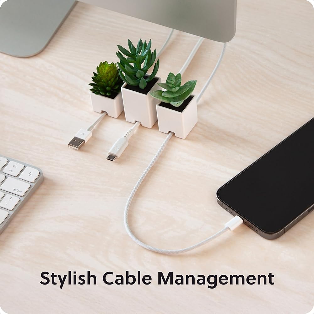 Elevate your cord management with this set of 3 U Brands® Adhesive Faux Succulent Cord Organizers. These convenient and durable cable holders are designed to keep your cords secured in place, preventing them from slipping off your desk or countertop. Perfect for securing wires 3-7 mm in diameter, these stylish cable holders accommodate everything from USB chargers to HDMI and Ethernet cables. The no-damage gel tape adhesive allows them to stick securely to any surface without leaving residue, making them versatile enough for your desk, kitchen, or living room. Featuring 3 unique faux succulent designs, this set not only prevents tangles but also doubles as a chic decorative accent. A practical and stylish solution for organizing cords in any room of the house. A great a gift for anyone passionate about cool tech gadgets, computers, electronics, and office desk accessories.