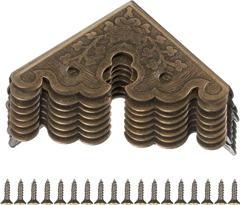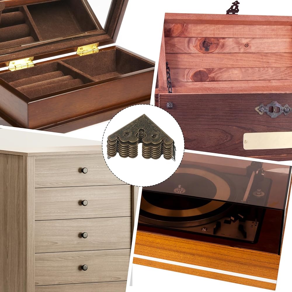 8 Pcs Bronze Decorative Table Corner Protectors, Vintage Corner Protectors for Furniture Vintage Covers Triangle Antique Bronze Metal Corners Protector with Screws for Jewelry Wooden Box Desk