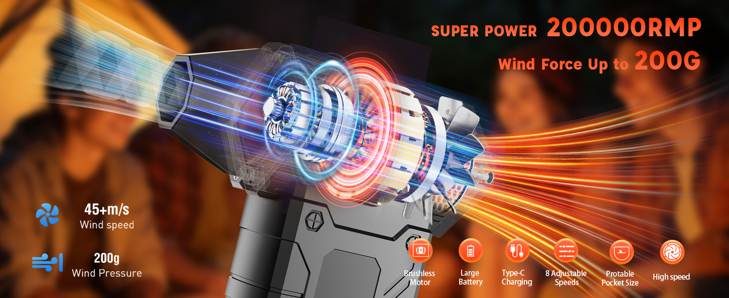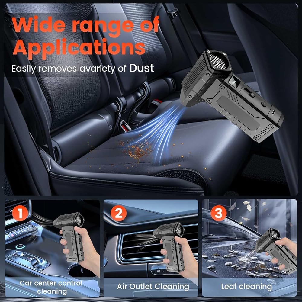 【High-Speed】The Air Duster- reaches up to 200,000 RPM, with a maximum wind speed of 45 m/s.This electric air blower come with 8 adjustable speed settings cater to different cleaning needs.Jet dry blower effectively removes dust and debris from keyborad/computer, drying surfaces quickly.