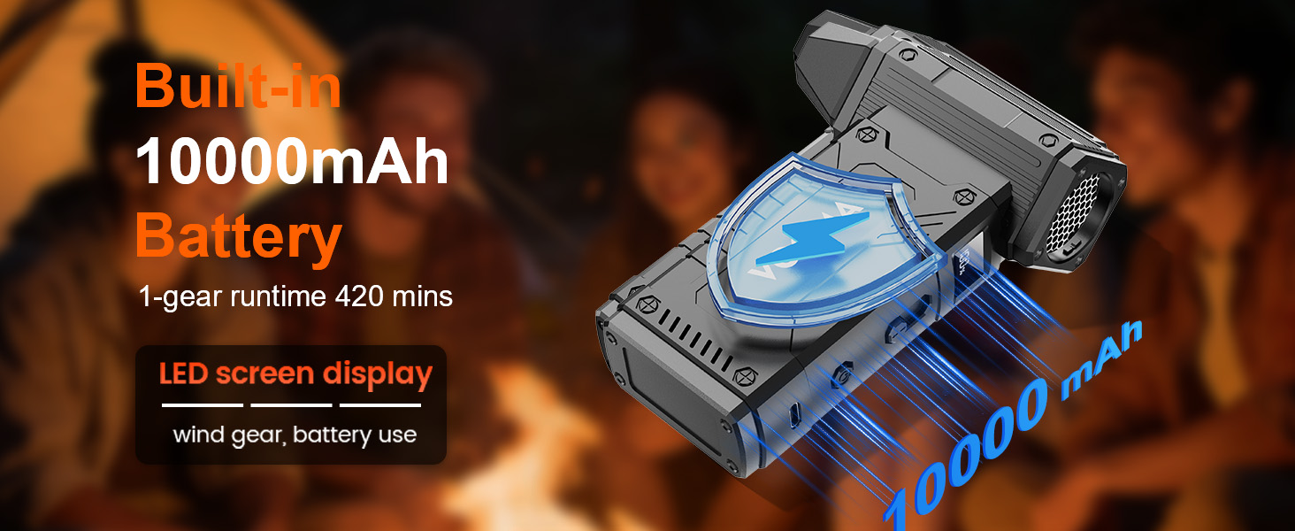 【Rechargeable & Large Battery】The rechargeable air duster have 10000mAh built-in battery,use the type C charging port.Full charge in just 2.5 hours.The battery life can last up to 420 minutes when the device is set at 1 gear.