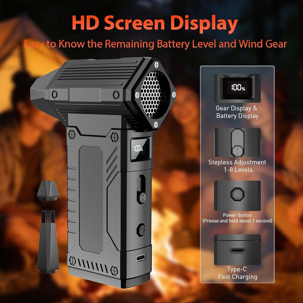 【Portable and Versatile】Mini air blower weighing 0.67 lb. The electric air duster is lightweight and easy to carry. Jet fan is ideal for cleaning desktops and keyboards, drying pet hair, home clean, car clean etc.Turbo fans also useful for outdoor activities ,such as picnics and fire-starting.