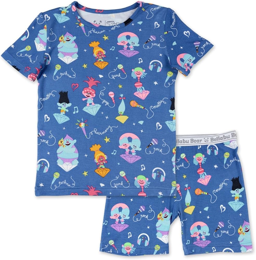 Let your little one sleep in style with the Trolls Music Kids Pajamas! Featuring beloved characters like Poppy, Branch, and their colorful friends, these pajamas bring the magic of Trolls to bedtime. Made from ultra-soft fabric, they're gentle on sensitive skin while keeping your child cool, cozy, and comfortable all night long. The breathable, moisture-wicking material ensures they stay at the perfect temperature, whether they're having sweet dreams or rocking out in their sleep. Perfect for every Trolls fan, these pajamas offer the ideal mix of fun, comfort, and sustainability.