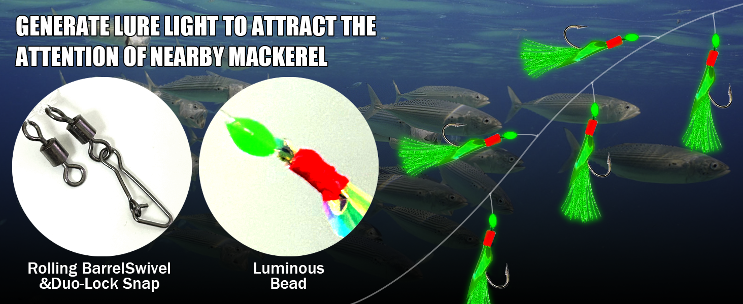 Enhanced Fish Attraction: Each rig combines glowing beads, simulated fish-skin flashers, and luminous tails to create irresistible vibrations and flashes. This proven combination effectively attracts mackerel, cod, bass, and other popular saltwater species