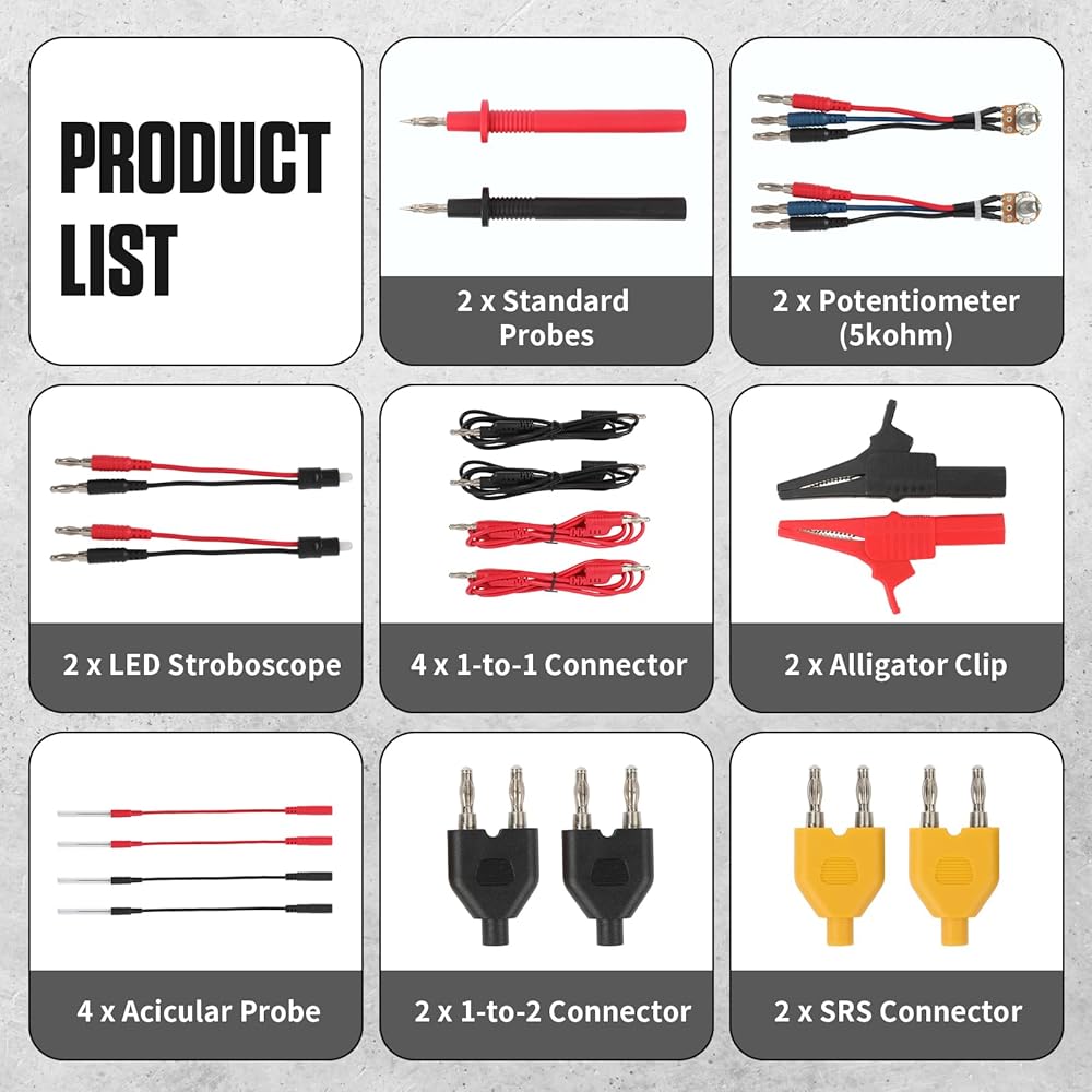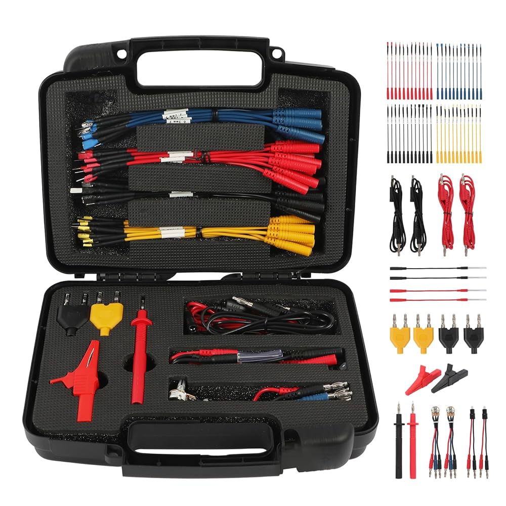 【Electrification Inspection "Helper"】: 92 Pieces Multimeter Test Lead Set test lead kit for monitoring Hall sensors, injectors, solenoids and more. Compatible with any automotive multimeter, suitable for United States, Europe, most vehicles, for tracing, checking, measuring or correcting complex vehicle circuits, on-time inspection can be in advance of accidents or misjudgments. Fully equipped to make testing and inspection easier is a must for the modern automotive mechanic.