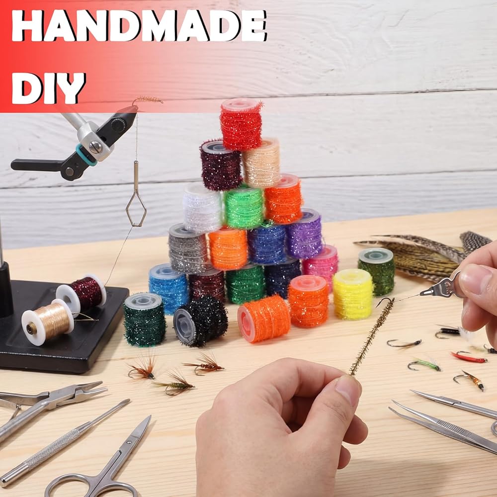 For Tying Enthusiasts: our fly tying thread is crafted for precision and creativity; Enhance your fishing experience with this tinsel chenille line, allowing you to craft intricate and effective that attract fish effortlessly, transforming your angling into an art