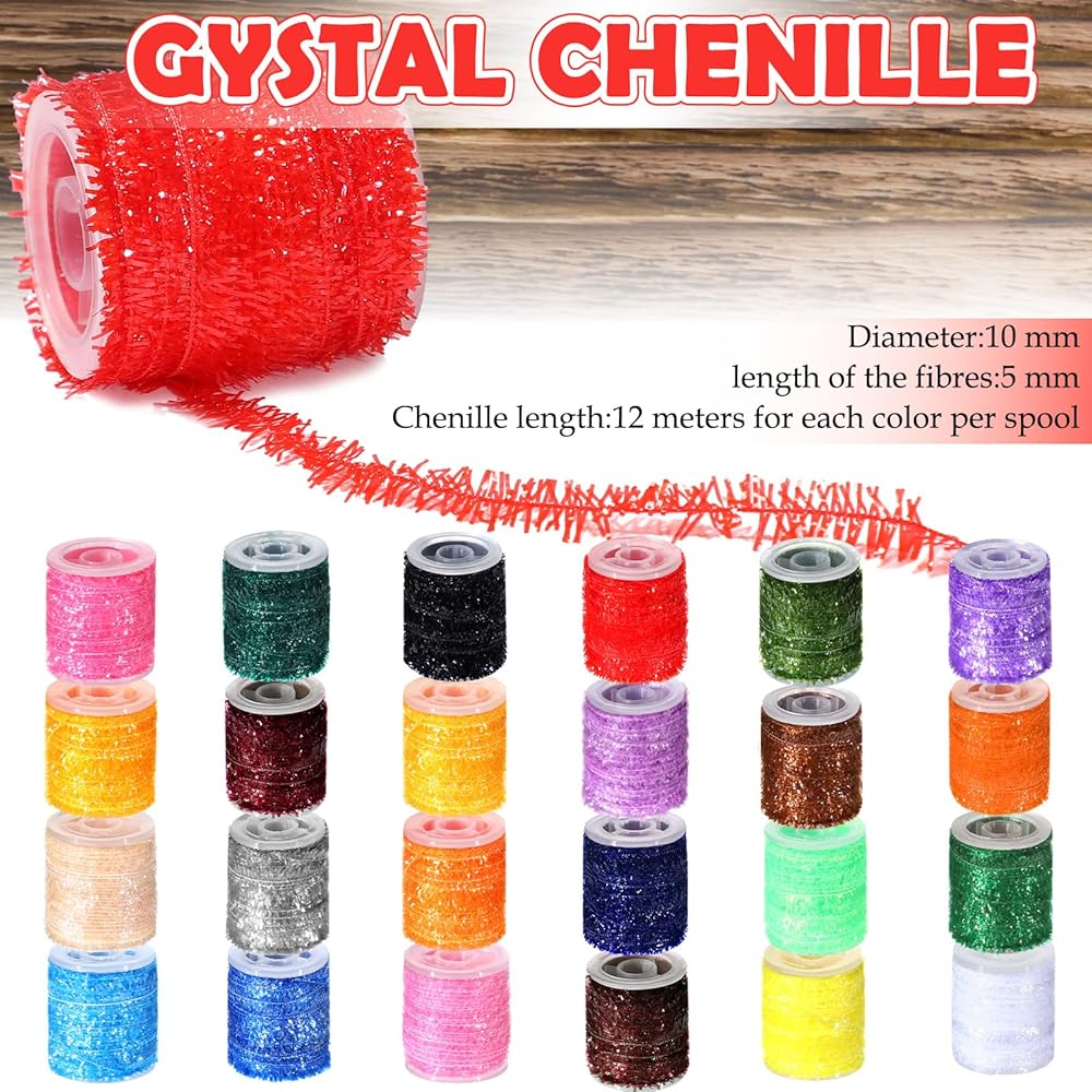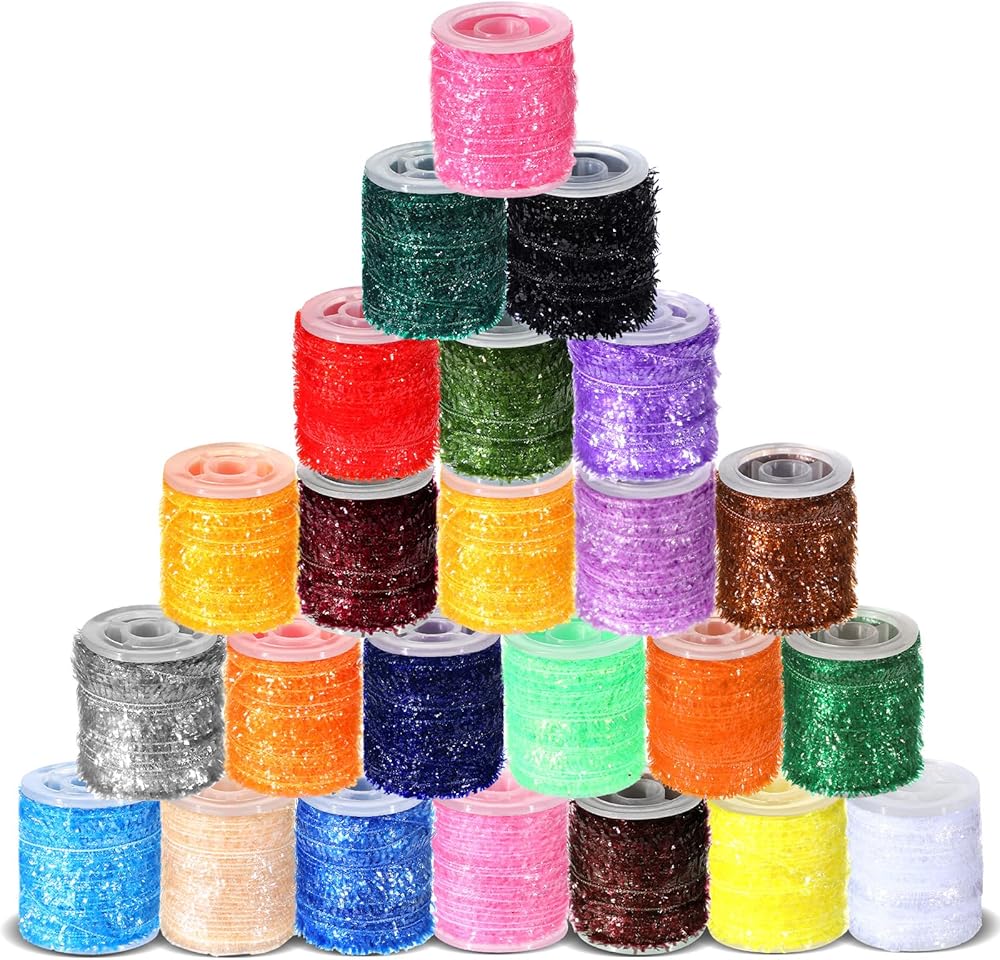 Package Includes: includes 24 vibrant colors, our flash tinsel line is packaged light weight for convenience; It's easy to store or carry, making it an ideal addition to any fishing kit; Whether at home or on the go, organize your chenille line with ease and efficiency