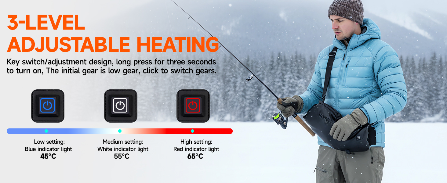 【كرة قدم سريعة لتدفئة اليد】- ملاحظة: ما عليك سوى الضغط مع الاستمرار على زر التبديل لمدة ثلاث ثوانٍ للتنشيط! اختر أحد إعدادات درجة الحرارة الثلاثة: 65 درجة مئوية /149 درجة فهرنهايت، أو 55 درجة مئوية /131 درجة فهرنهايت أو 45 درجة مئوية /113 درجة فهرنهايت. توفر كمامة اليد الساخنة هذه الكثير من الحرارة للحفاظ على دفء يديك في الطقس البارد.