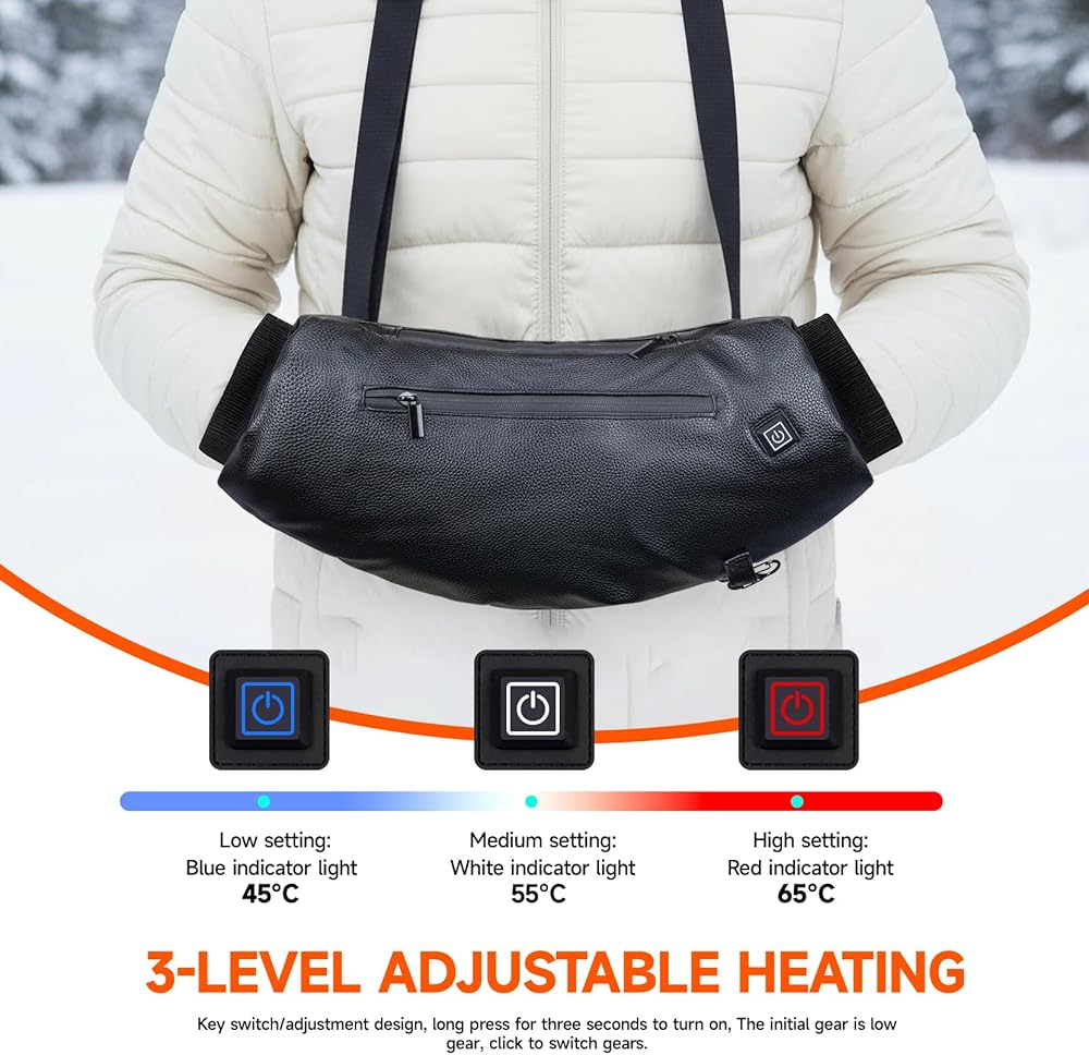حقيبة لتدفئة اليد، غطاء يد كهربائي من جلد البولي يوريثان، مع بنك طاقة قابل لإعادة الشحن بقوة 10000 مللي أمبير في الساعة، 3 مستويات تسخين لكرة القدم، والصيد، وصيد الأسماك، والتخييم. (يشمل بنك الطاقة)