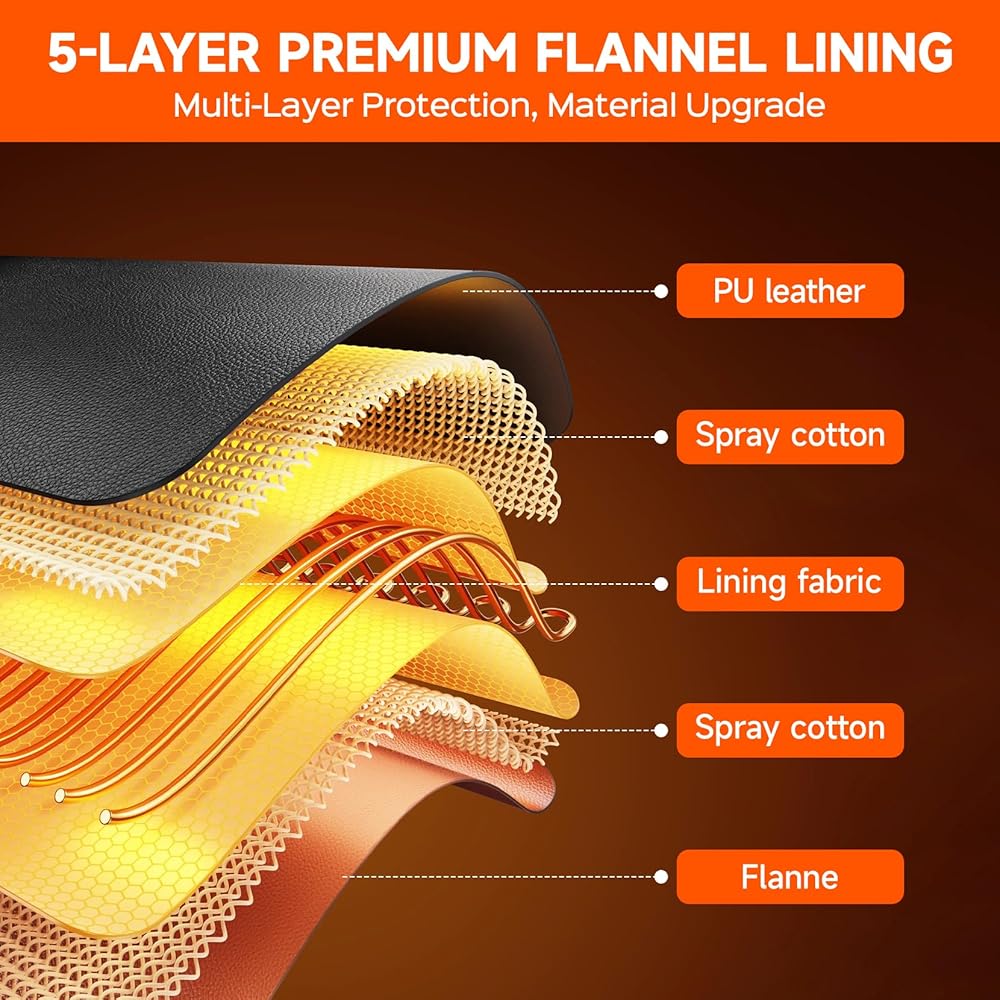 【أربع مناطق تسخين】- نظام تسخين بأربع مناطق مع تصميم طبقة داخلية وخارجية - منطقتان داخليتان توفران تراكمًا مستمرًا للحرارة، بينما تحبس منطقتان خارجيتان الدفء وتمنعان الرياح، مما يضمن لك الدفء المريح طوال الشتاء البارد بأكمله.