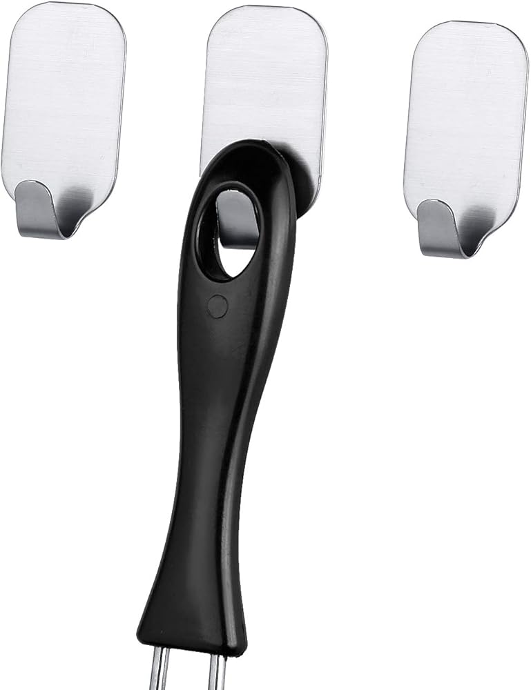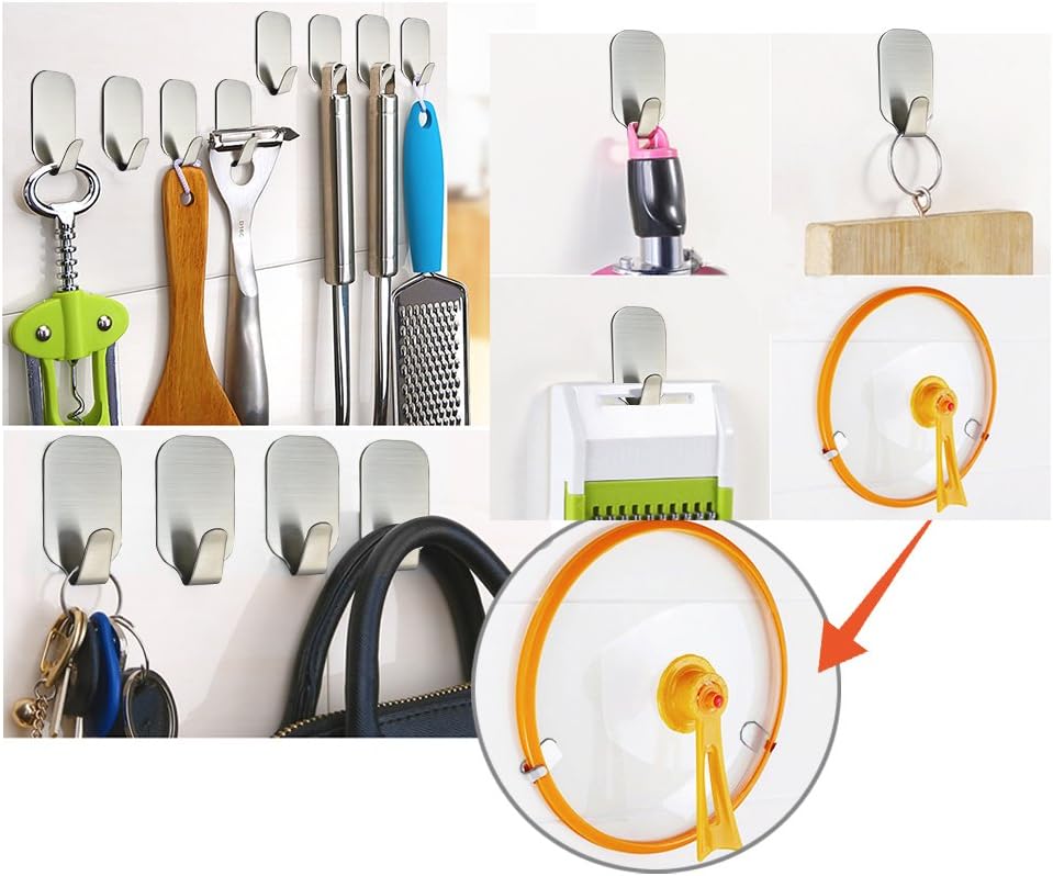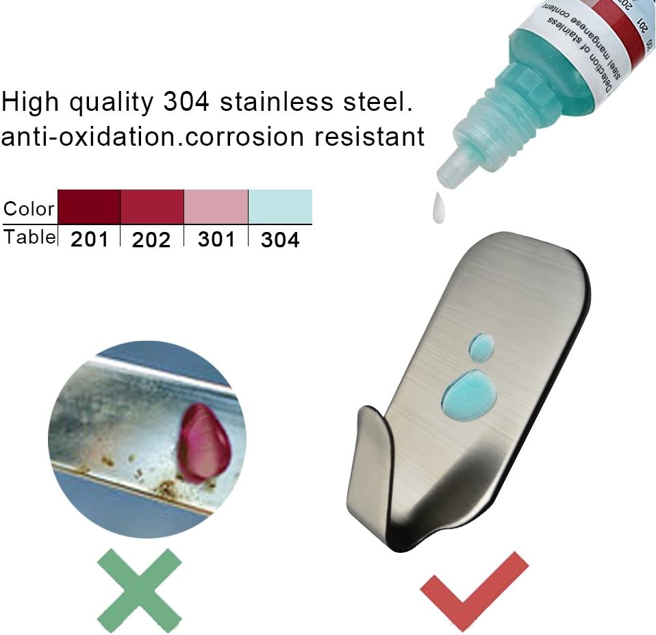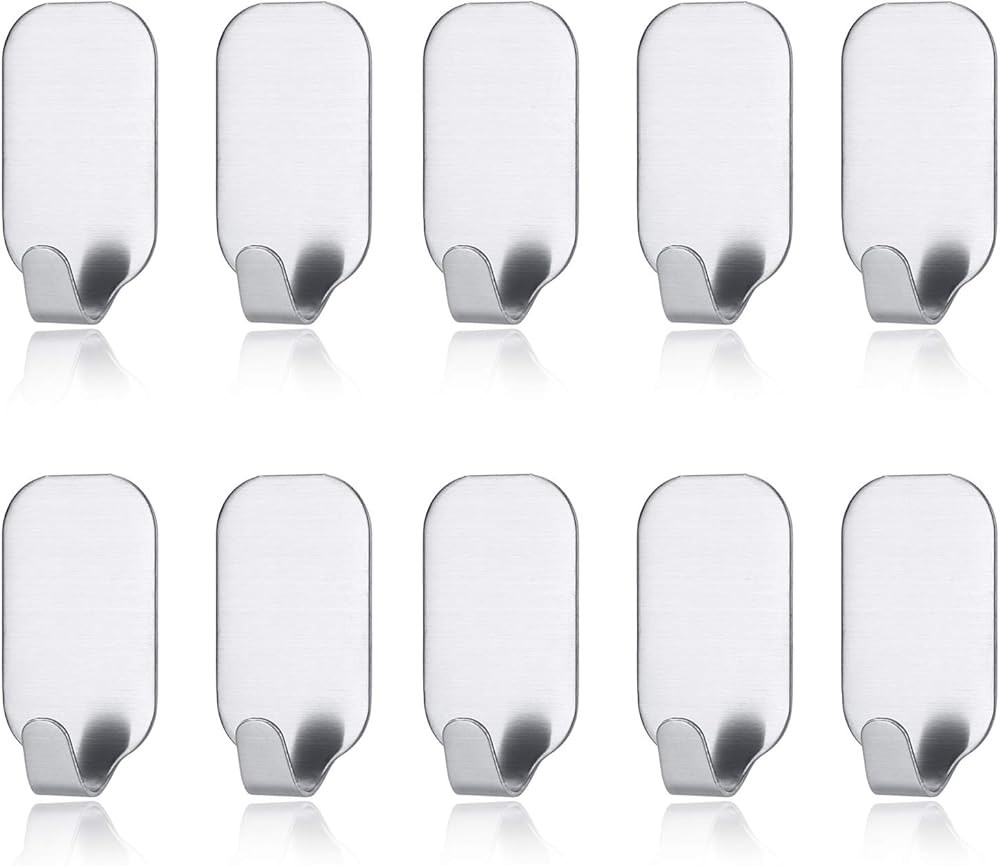 Self Adhesive Hook Stick on Wall 304 Stainless Steel Polished Hanging Clothes Coat Hat Hooks and Strong Heavy Duty Metal Super Power Hooks Storage Organizer (10 Pack) (Hooks-10)