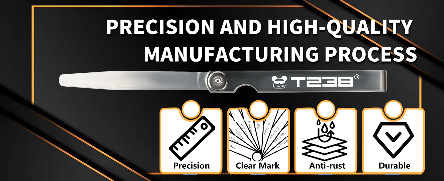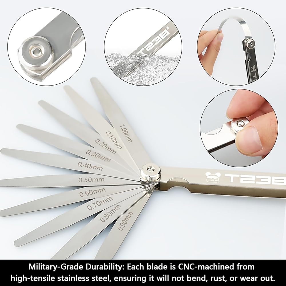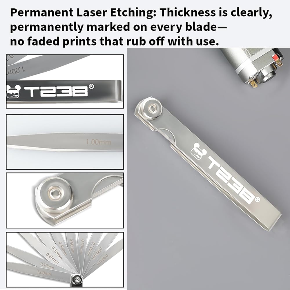 Clear Markings: Each blade features permanent laser-etched thickness identification for quick, easy, and error-free selection.The T238 High-Precision Feeler Gauge Set is the definitive tool for enthusiasts and technicians dedicated to this fine-tuning process.