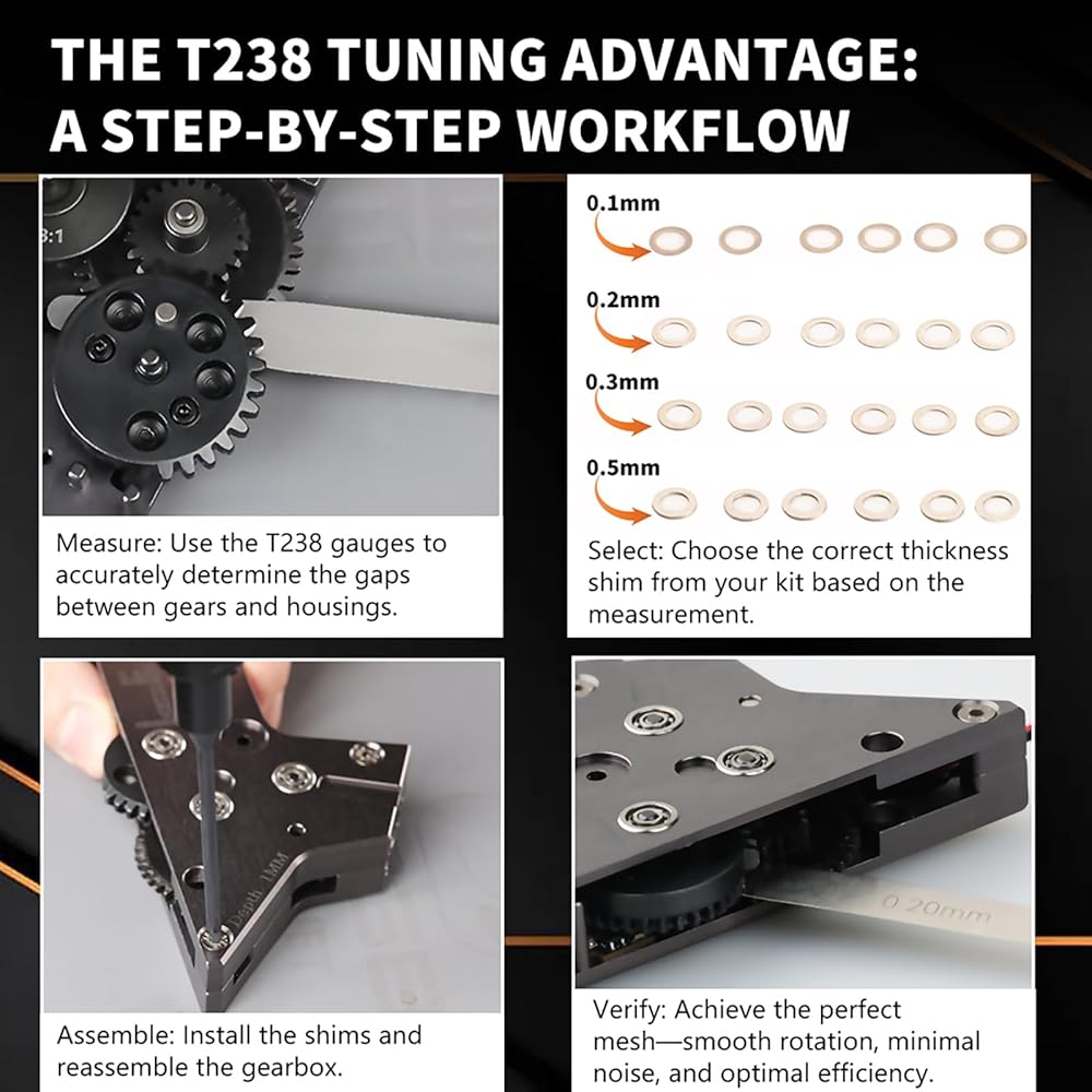 Versatile Application: The essential tool for professional-grade gear shimming (shim gear) in airsoft gearboxes, ensuring smooth and efficient operation.Precise gear alignment reduces operational noise, extends gear life, and lowers current draw.