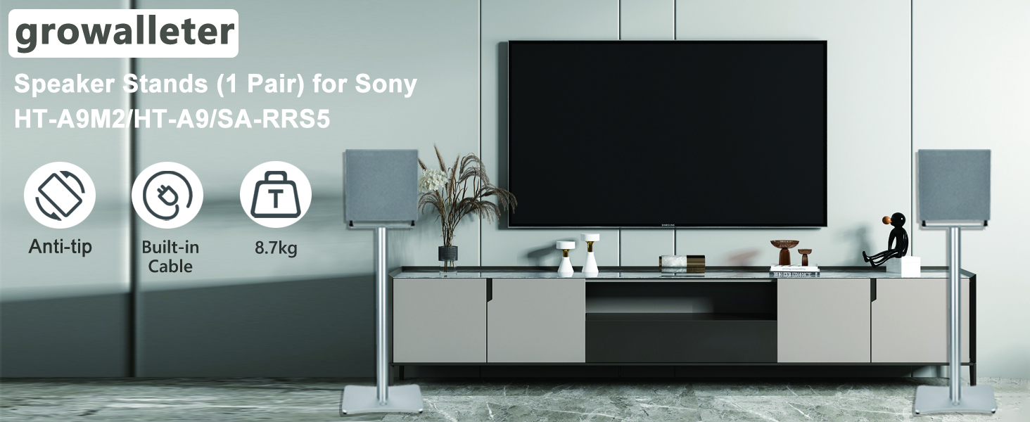 2 Pcs Speaker Stands for Sony BRAVIA Theater Quad 16-Speaker, for Sony HT-A9 Speaker, for Sony SA-RS5 Wireless Rear Speakers, Aluminum AlloyThickened and Stable, Hidden Wire Trough (Stand only)
