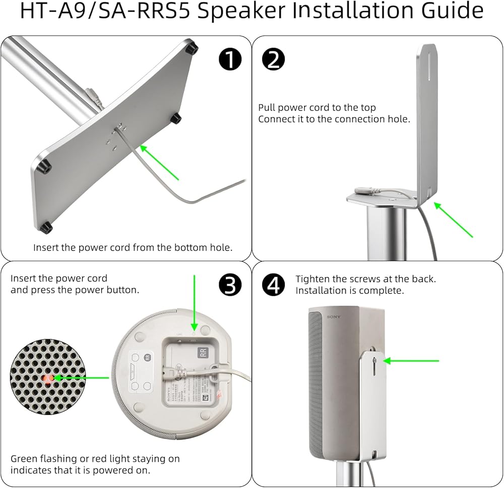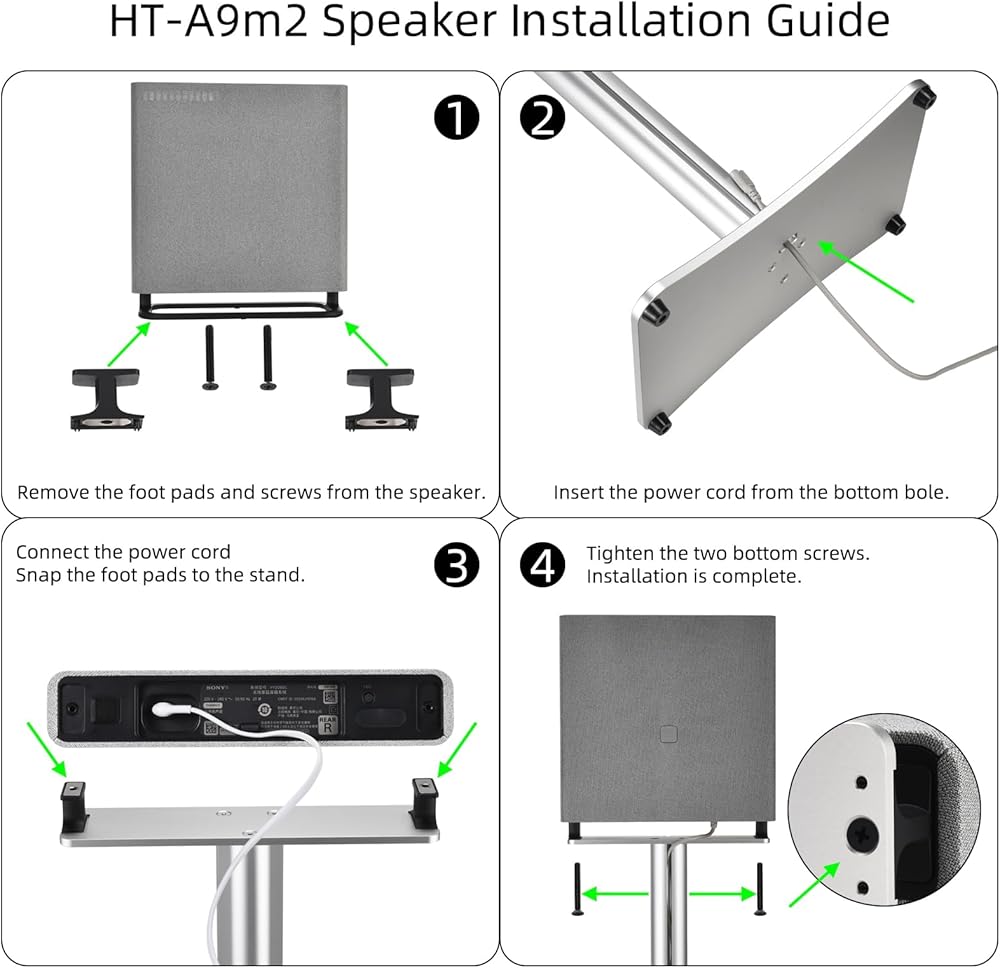 Wide compatibility, exclusive adaptation: Perfectly compatible with Sony HT-A9M2, HT-A9 and SA-RRS5 high-end speakers. The bracket comes with a dedicated HT-A9M2 connection table + HT-A9/SA-RRS5 universal connection table, precise matching, one-step in place.