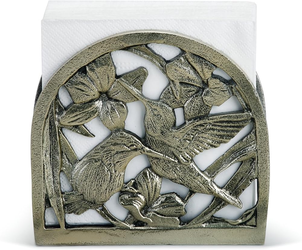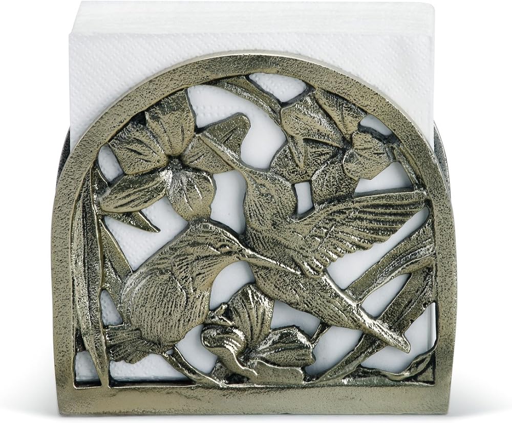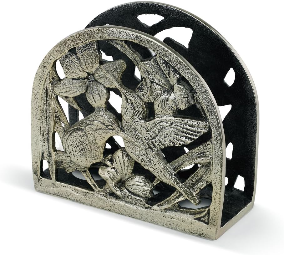 Napkin holder is made of hand-cast aluminum with filigree design on both sides. Unique artwork inspired by the authentic beauty of nature