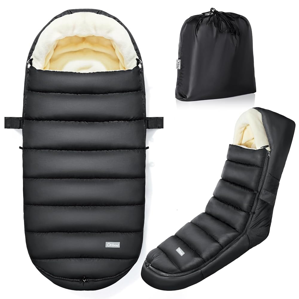 IvyWind Stroller Footmuff, Baby Winter Stroller Bunting Bag with Removable Zipper, Universal Warm Sleeping Bag for Cold Weather, Waterproof & Cozy Fleece Lining for Toddler Infant Kids, Black