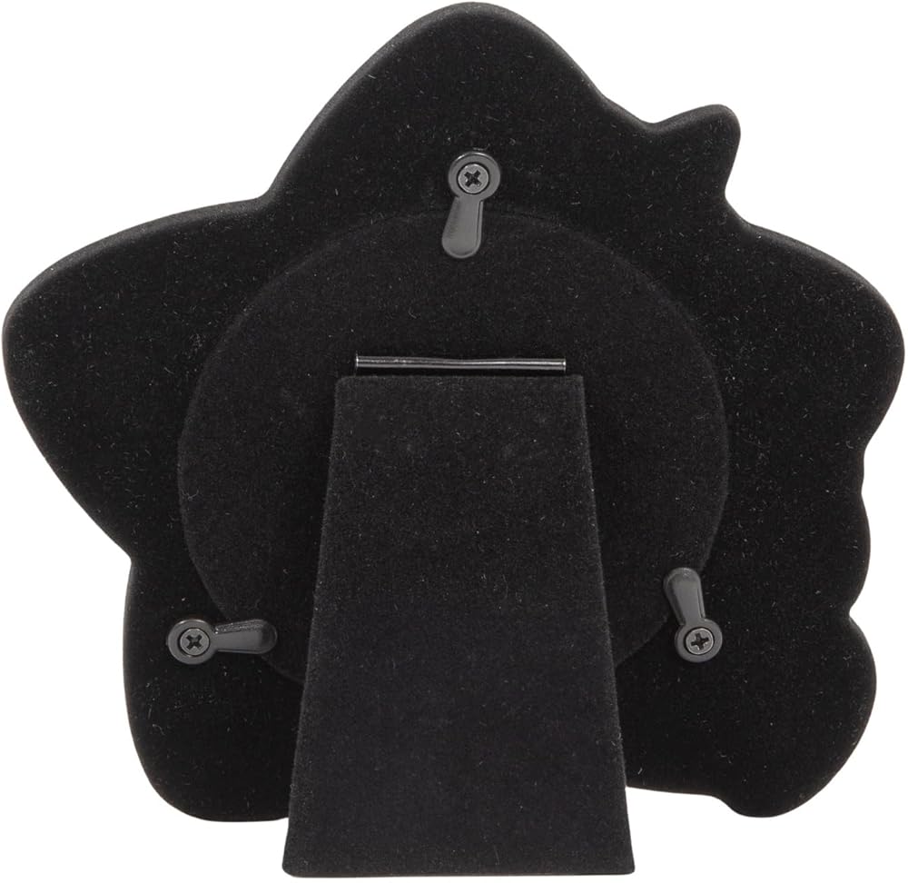 Beautiful star shaped small baby picture frame in two tone satin silver and silver plated highlights. Features smiling teddy bear and three decorative inner stars. Makes for a beautiful gift for any baby occasion including baby showers and newborn baby gift idea. This model is to be used as free standing only - not suitable for wall hanging. This picture frame holds a single 3.5" x 3.5" photograph. Actual frame size: Height - 4.5", Width - 5", Depth - 1". Tarnish resistant (lacquer coated) and complete with luxury black velveteen felt backing and clear glass protective cover.