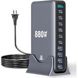 880W USB C Charging Station, 10-Port Desktop USB Charger, USB C Charger Block for Multiple Devices for MacBook Pro/Air, DELL, iPad, iPhone, Samsung Galaxy