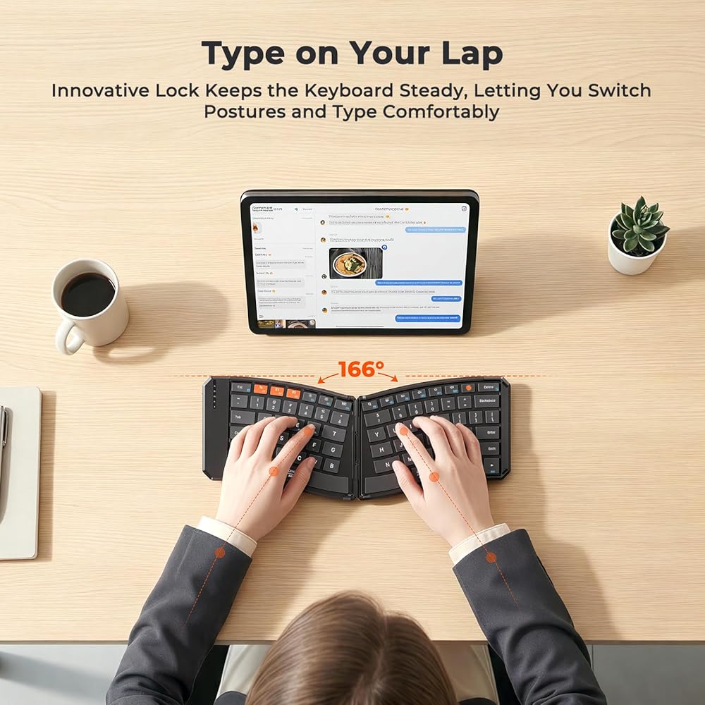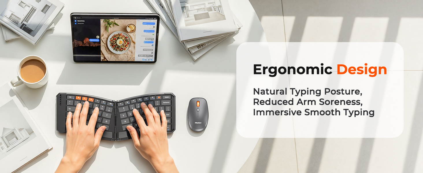 【ON-THE-GO PRODUCTIVITY】This foldable ergonomic keyboard-mouse combo features an ultra-portable folding design. It reduces wrist strain and makes mobile work seamless for travelers and digital nomads. Pack smart, work seamlessly—wherever your journey takes you.