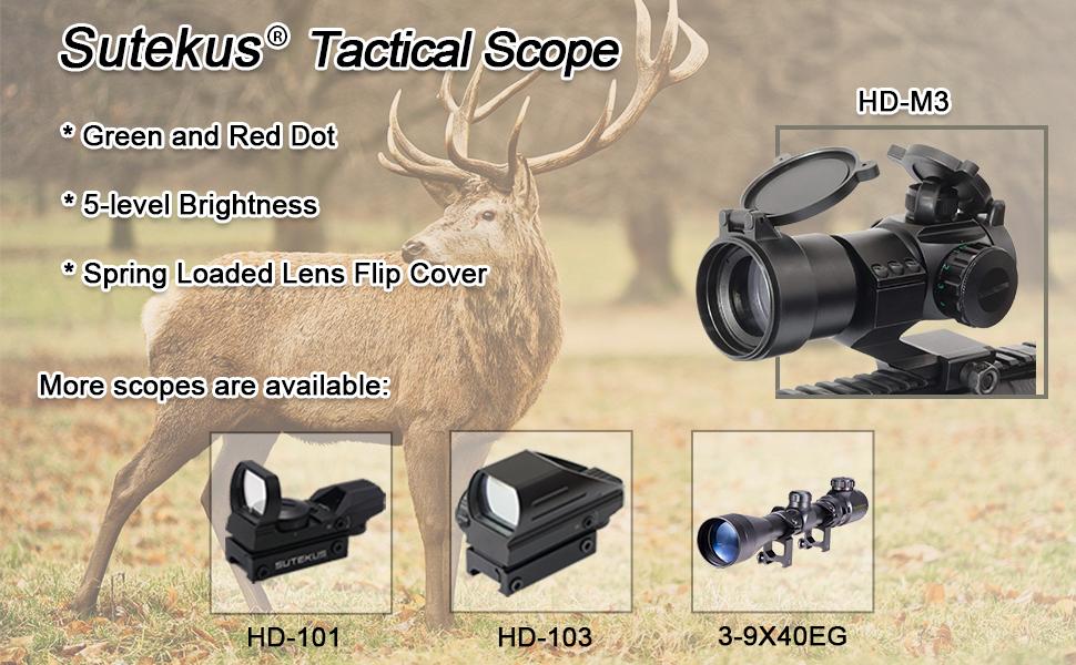 Sutekus HD-M3 Red Green Dot Sight Tactical Reflex Scope with Cantilever Mount