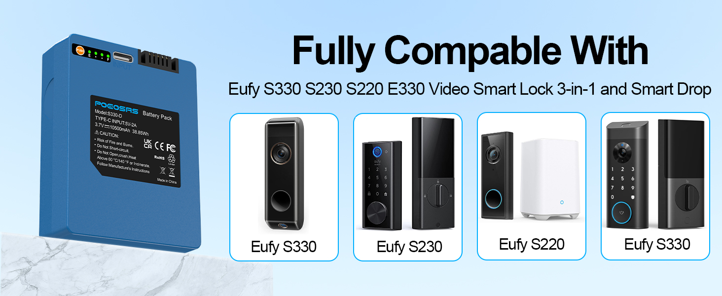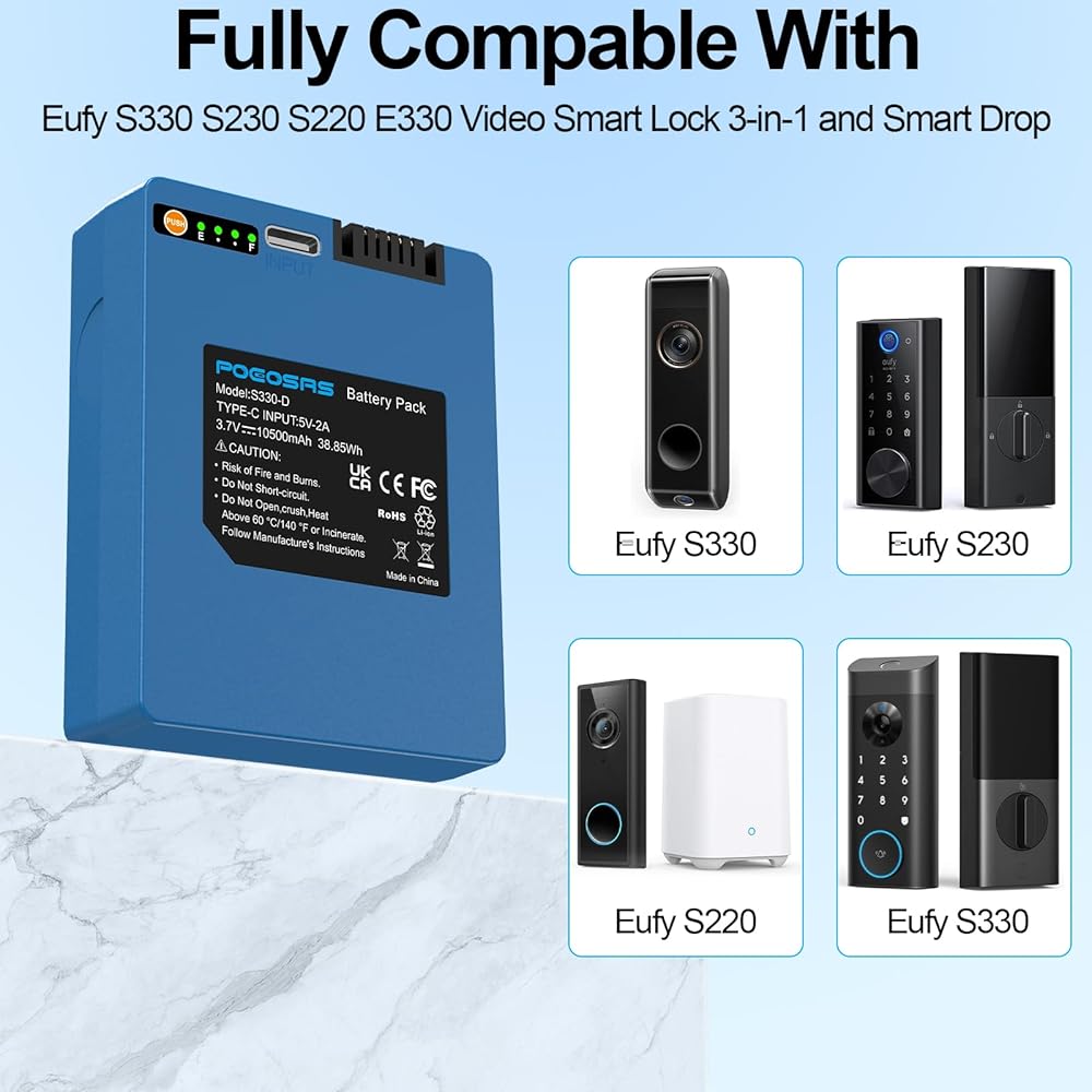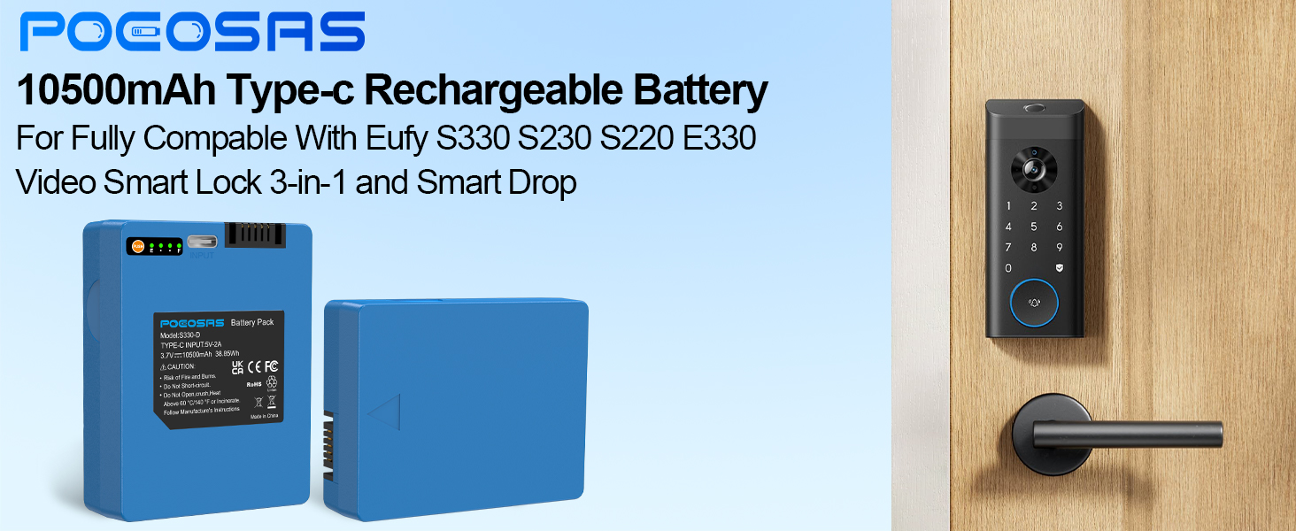 التوافق الكامل: بطارية POEOSAS متوافقة تمامًا مع eufy S330 وS230 وE330 وS231 Video Smart Lock 3-in-1 وSmart Drop. إنها بديل مباشر للبطارية الأصلية، مما يضمن الملاءمة والأداء المثالي