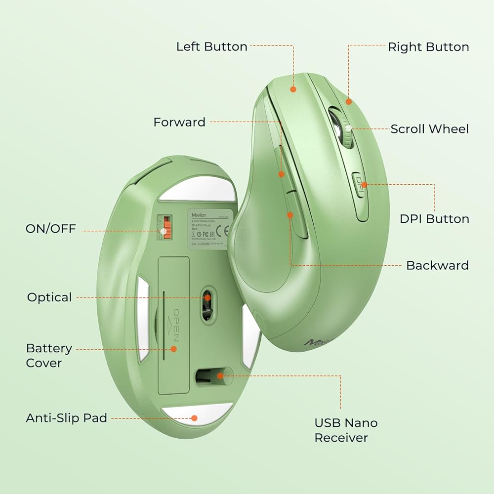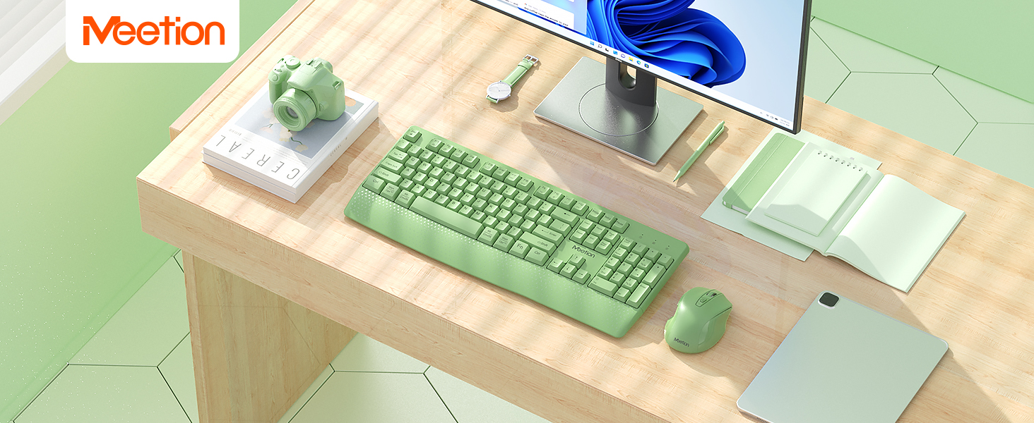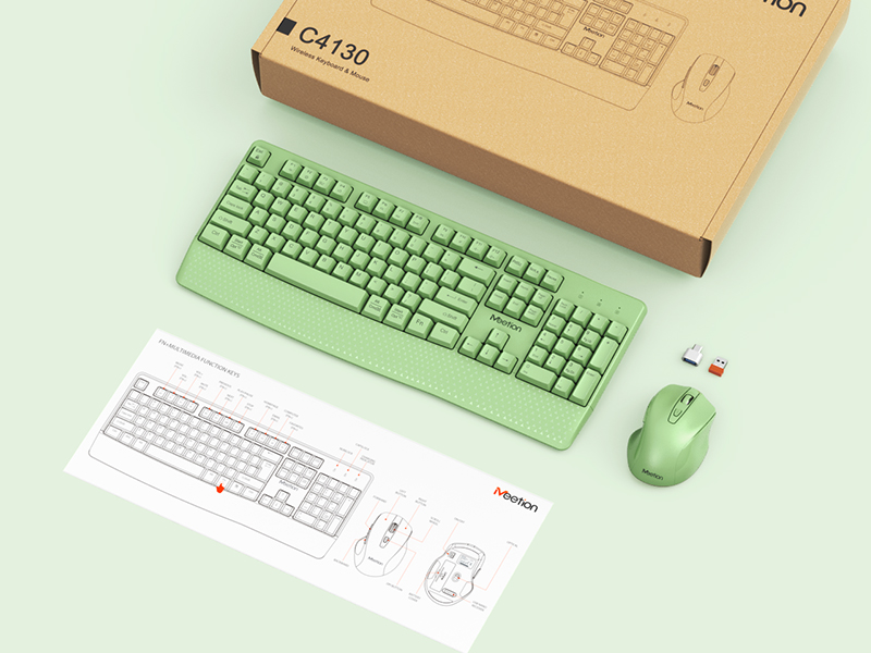 MEETION Green Wireless Keyboard and Mouse, 2.4G USB Receiver Plug-and-Play, Computer Keyboard with Wrist Support, 3 Level DPI Mouse, Long Time Lasting Battery for PC/Mac/Windows/Laptop, Green