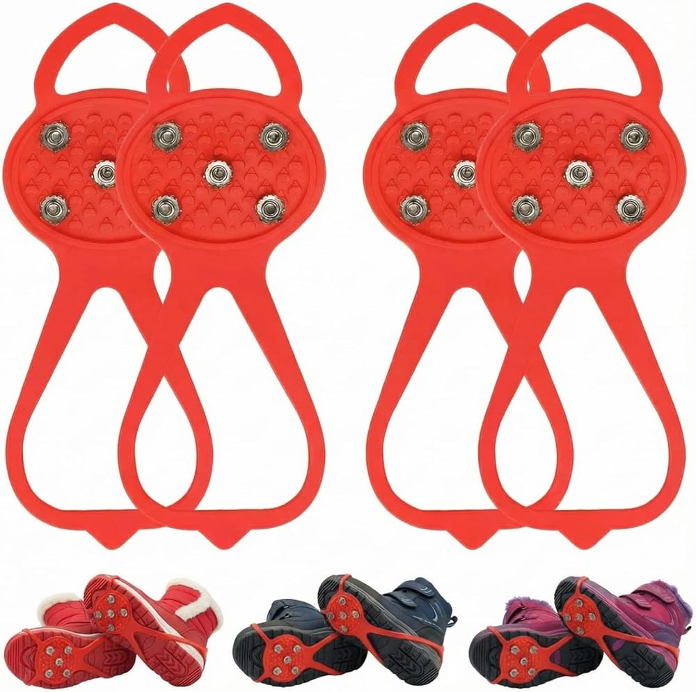 Keep your kids safe and confident on icy surfaces with our high-quality ice cleats! Designed specifically for children, these traction devices provide superior grip and stability, making winter walks and outdoor activities worry-free. Made from durable, flexible silicone with reinforced sturdy steel spikes, these winter grips offer excellent anti-slip performance on snow, ice, and slippery terrain. The strap ensures a secure fit over various shoe types, while the lightweight build prevents fatigue during extended use. Ideal for playground fun, or family outings, these kids ice cleats are a must-have for cold-weather safety.