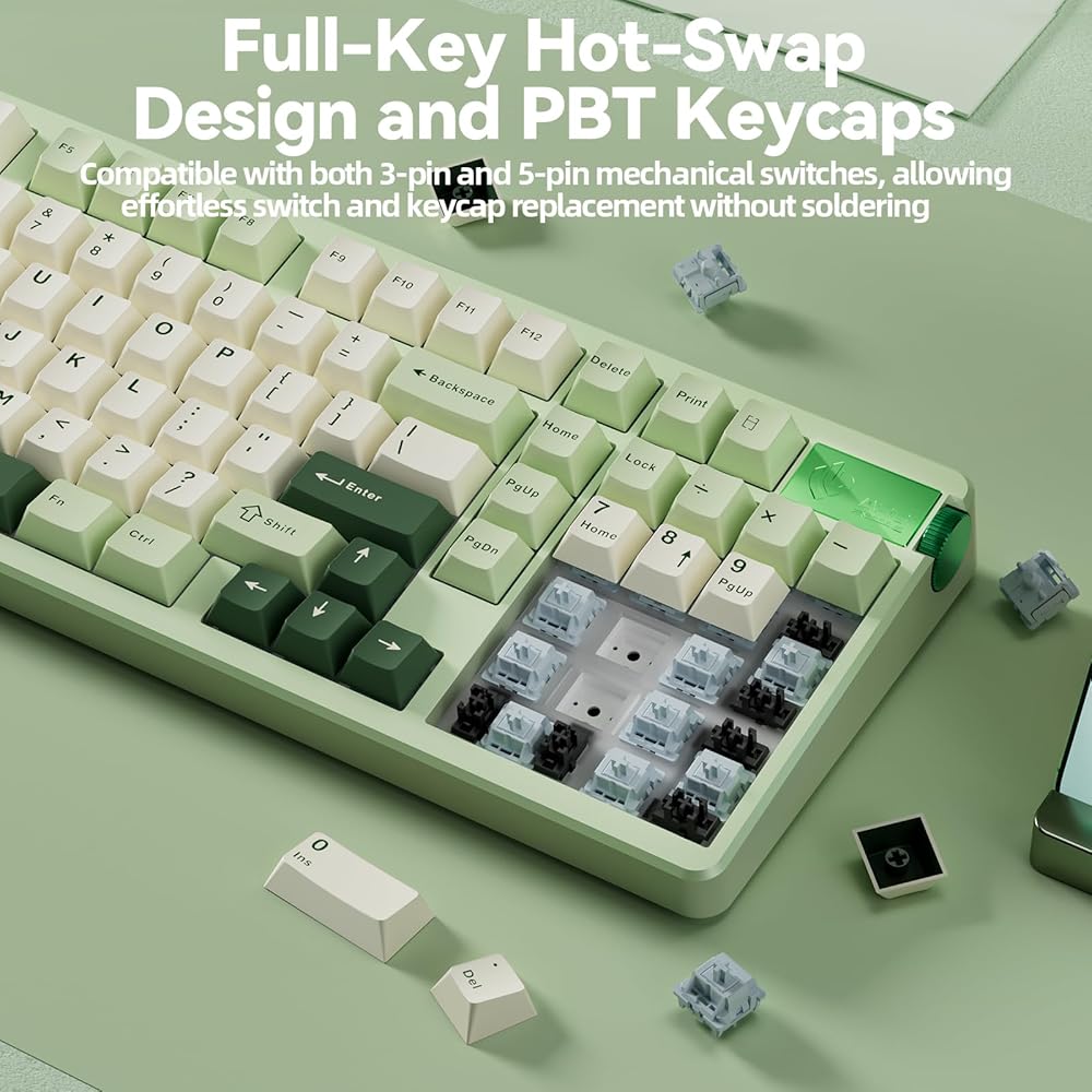 Hot Swappable Mechanical Keyboard: This hot-swappable mechanical keyboard features a dedicated hot-swap PCB that lets you easily change 3-pin or 5-pin switches—no soldering required. Built as a true enthusiast's dream, this wireless mechanical keyboard supports MX-style switches from any brand, so you can mix and match to create your perfect typing experience. Whether you're building a responsive gaming keyboard for competitive play or fine-tuning the feel for daily work