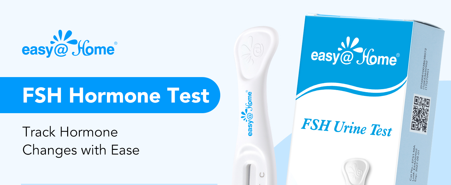 Quick and Simple At-Home Testing: The Easy@Home FSH Test allows convenient at-home monitoring of Follicle-Stimulating Hormone (FSH). The test can be used either by holding the test stick in the urine stream or by dipping it into a collected urine sample for about 10 seconds. Results are ready in approximately 10 minutes—no lab visits required